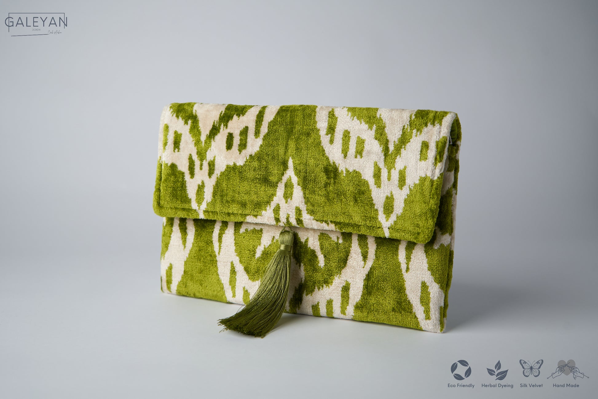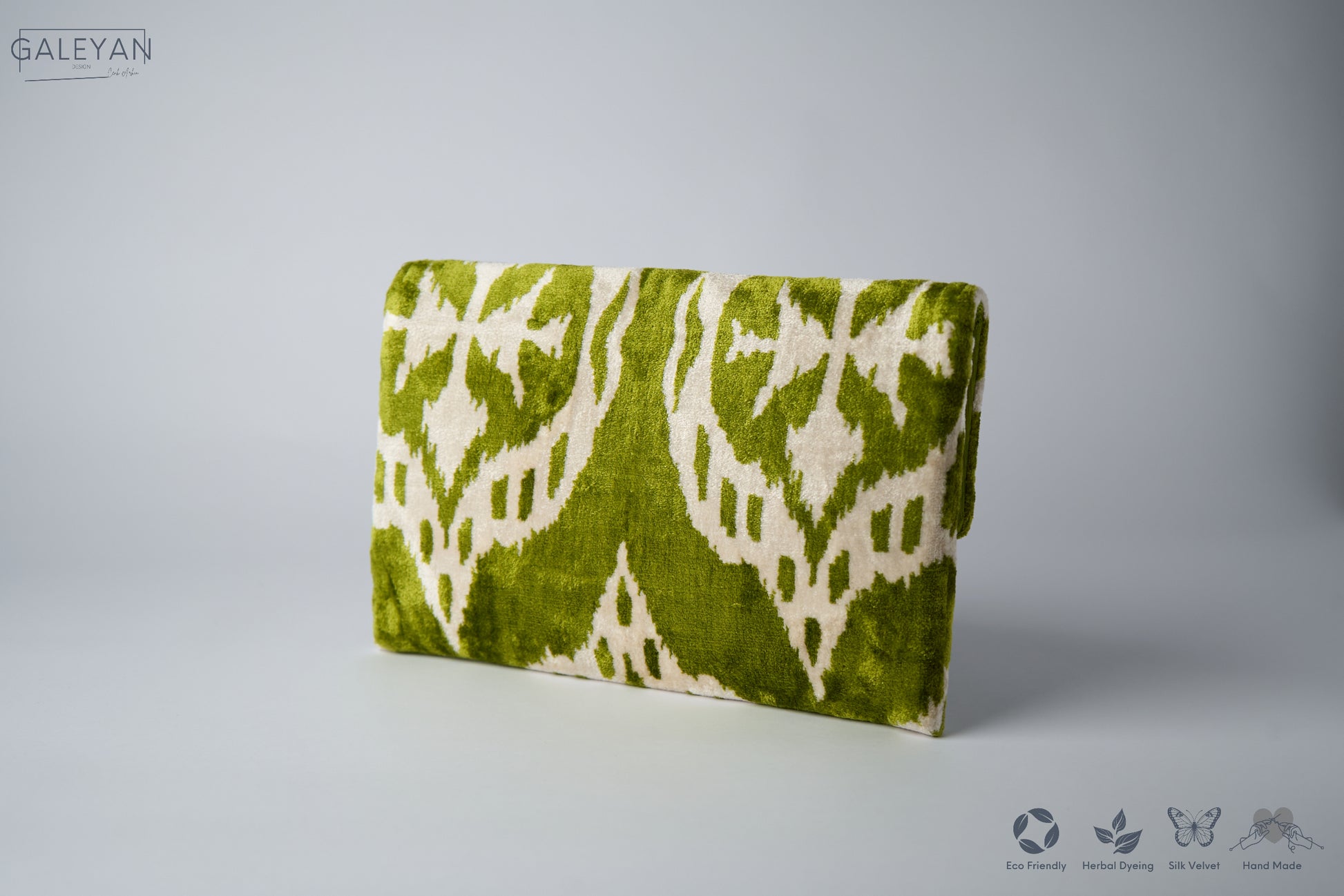Silk Velvet Ikat Clutch – Off White / Green