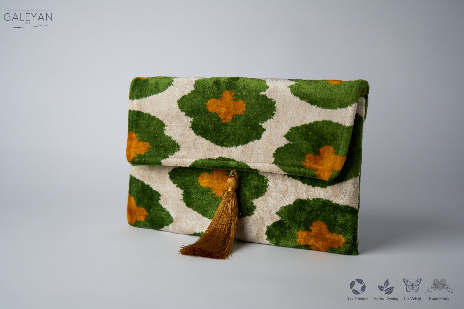 Silk Velvet Ikat Clutch – Off White / Green / Brown