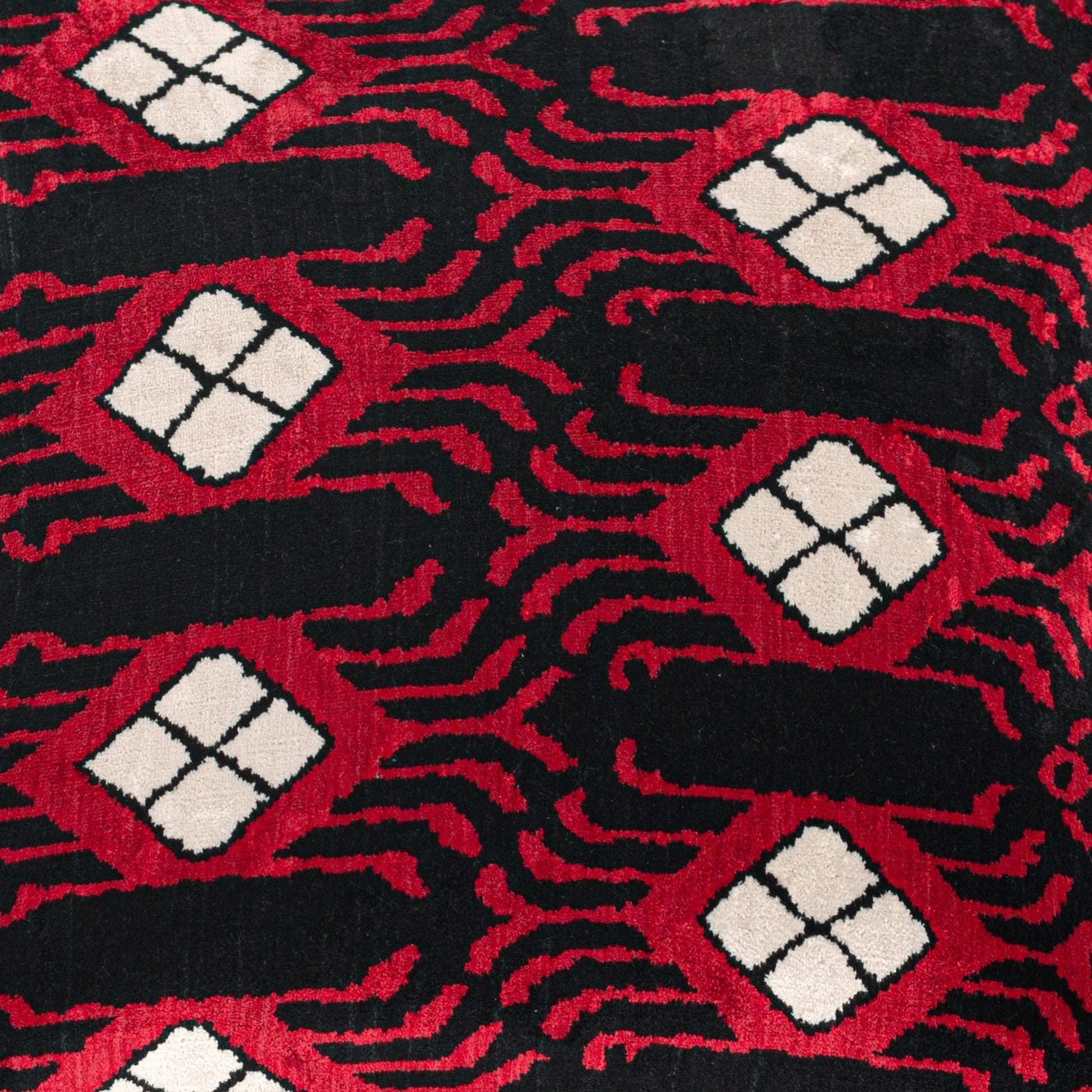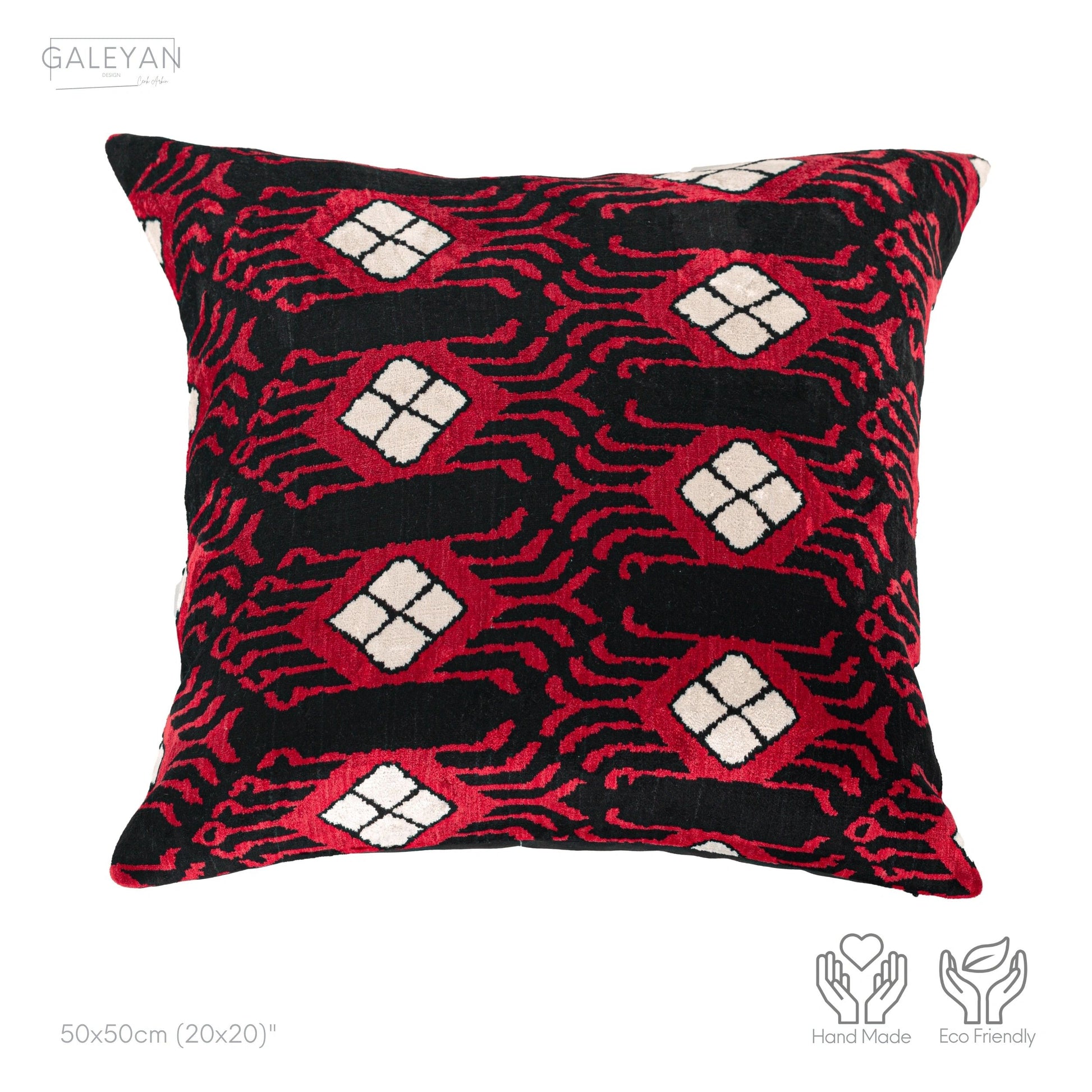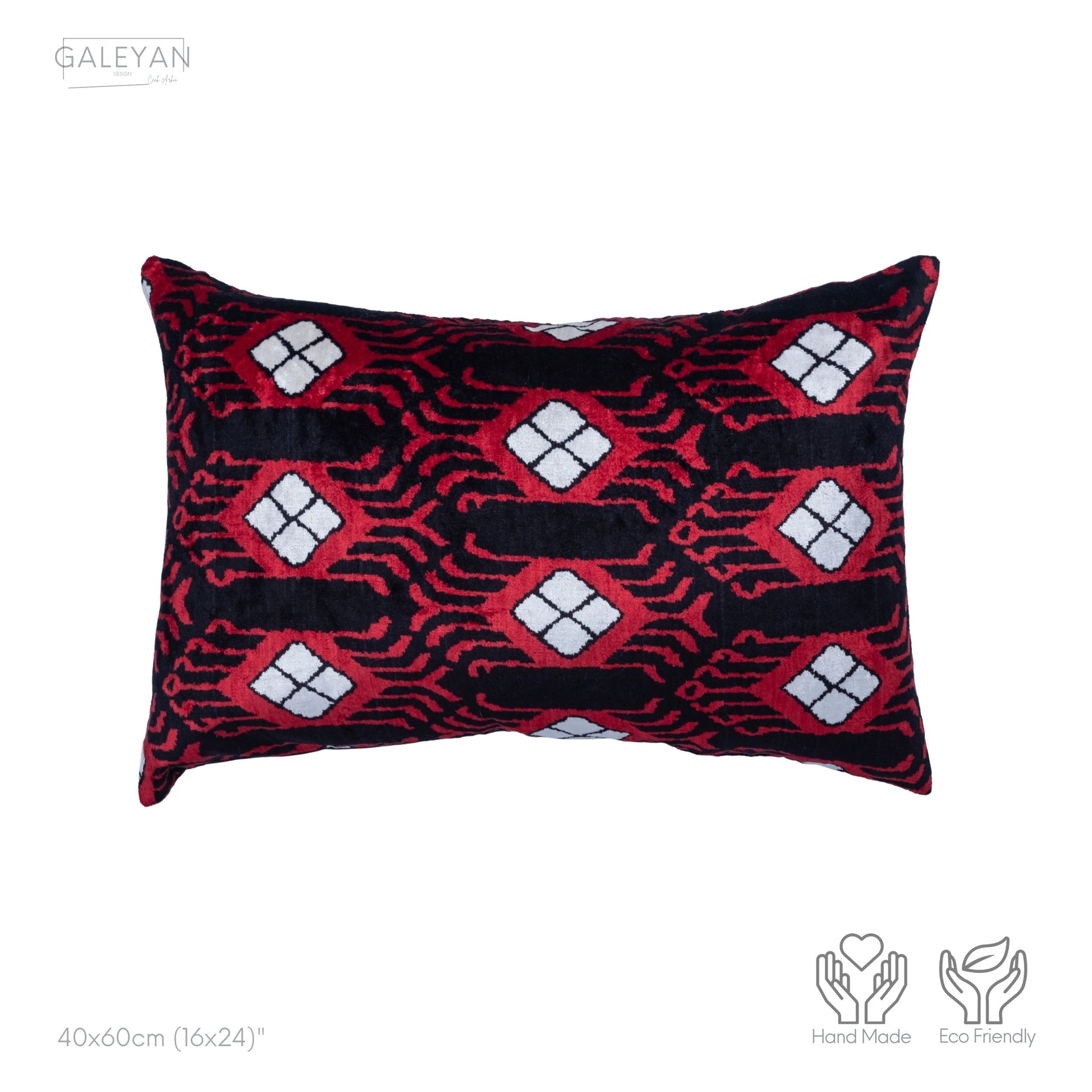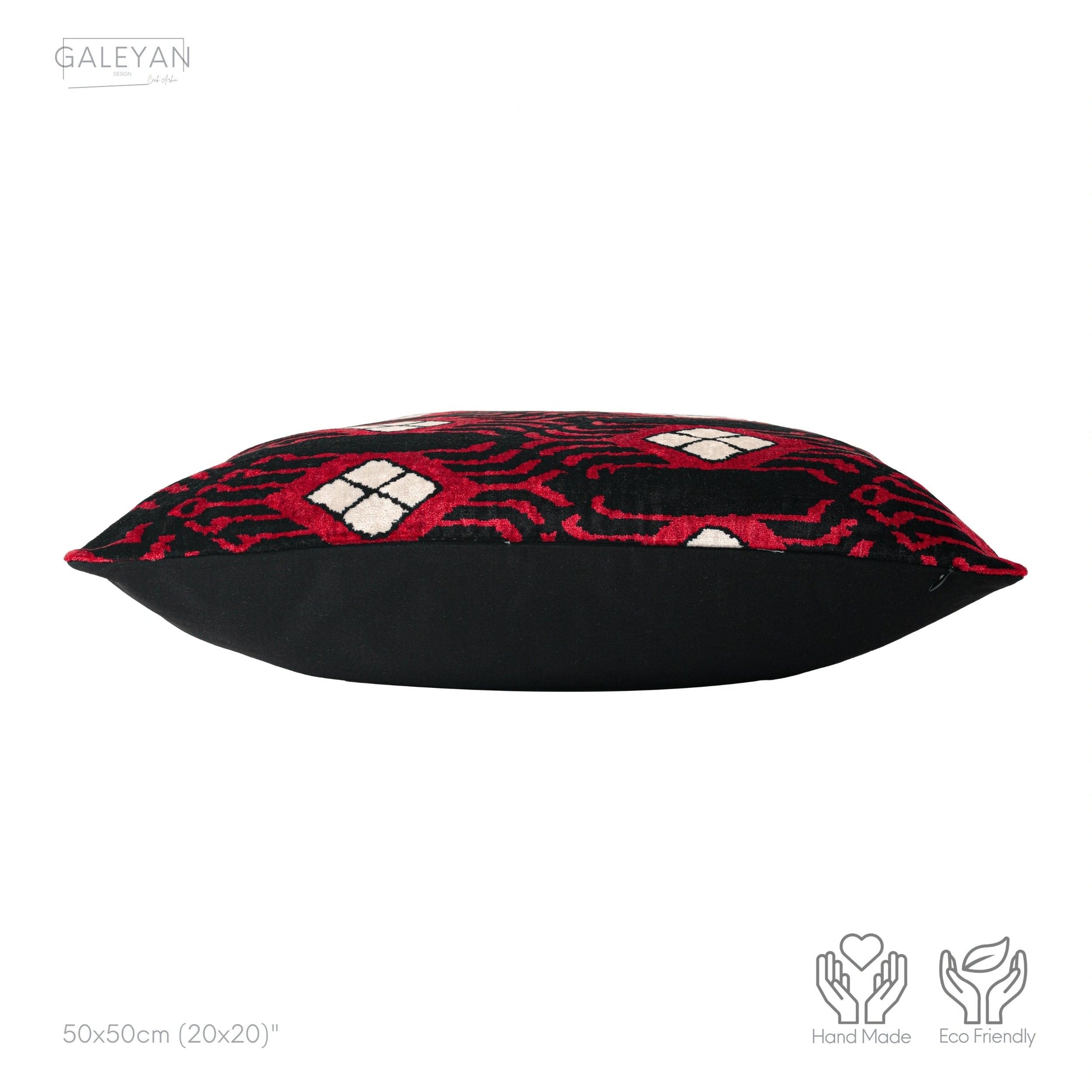 Luxury handmade ikat velvet pillow cover Black & White & Red