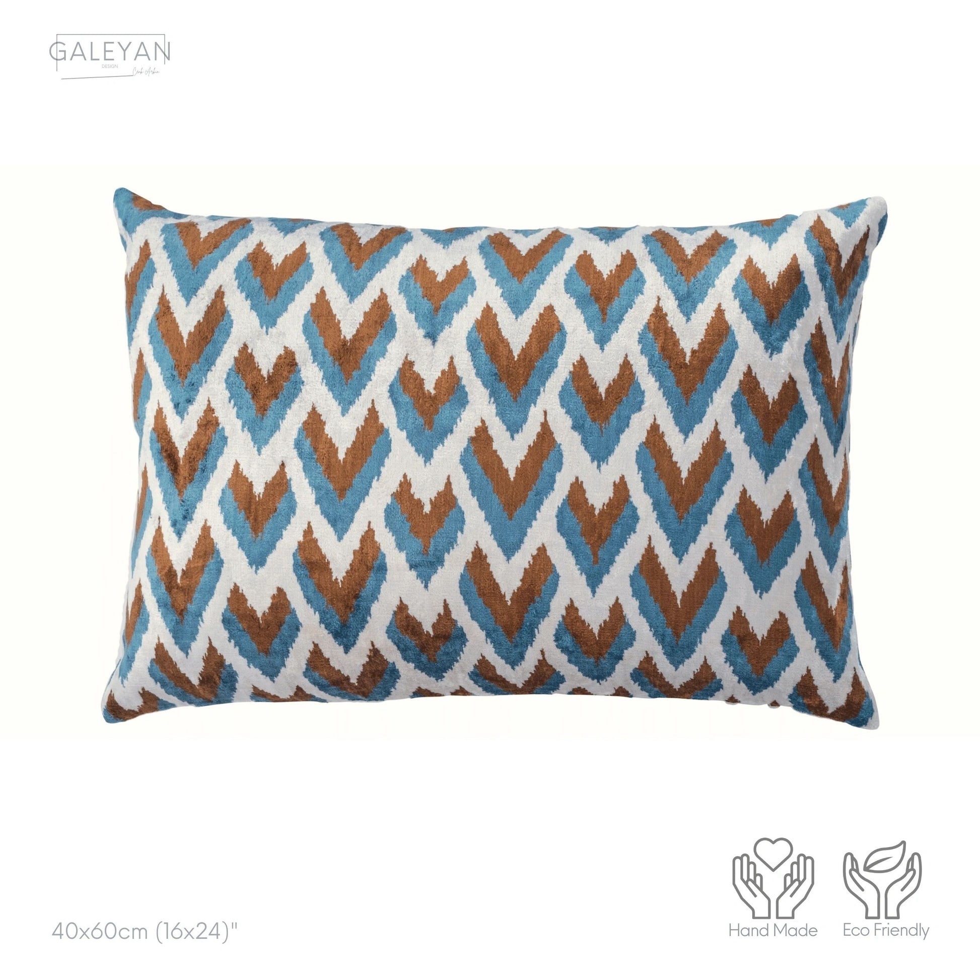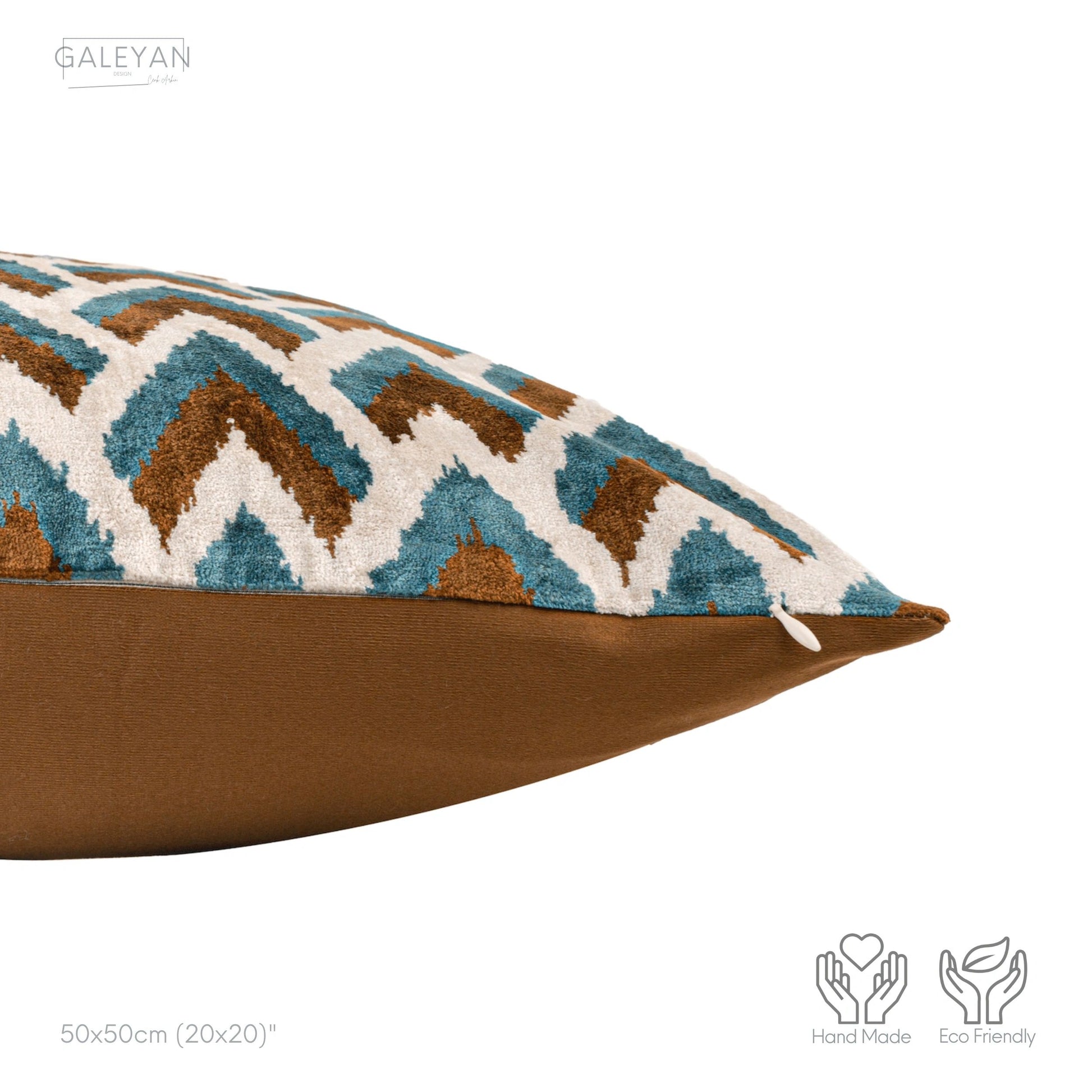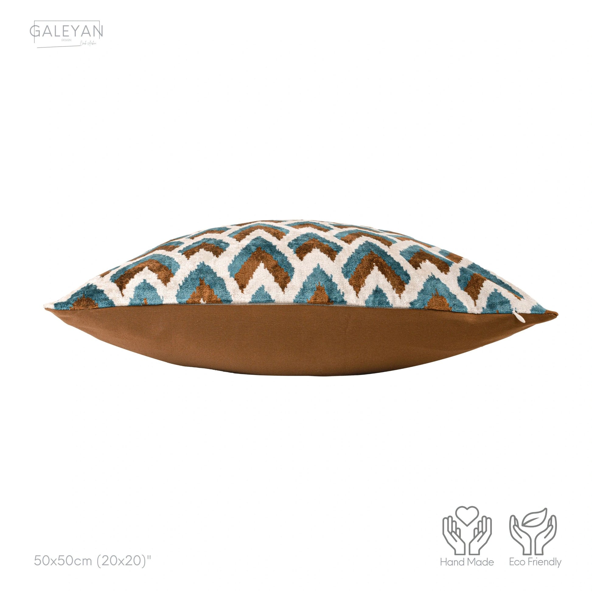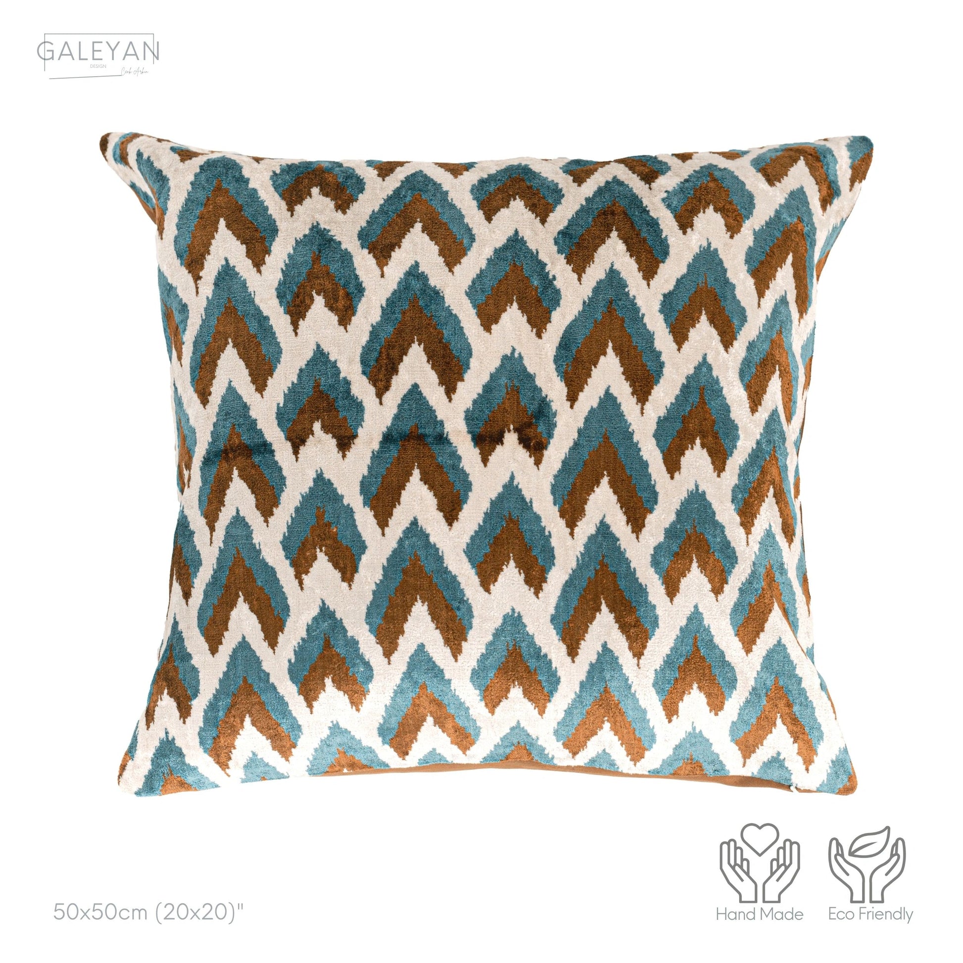 Luxury handmade ikat velvet pillow cover Brown & Turquoise Blue & White