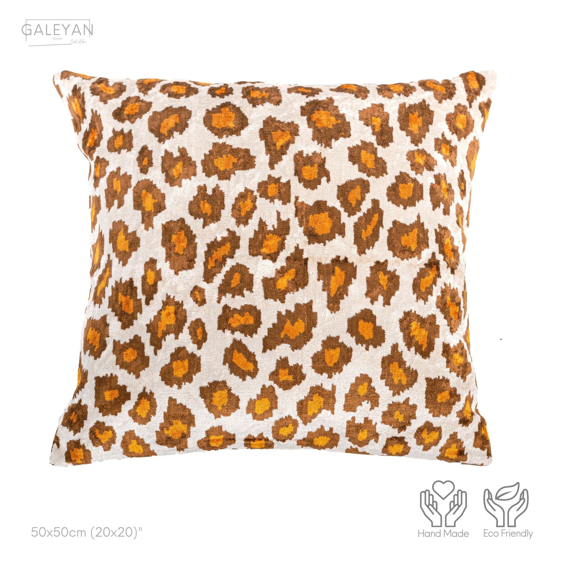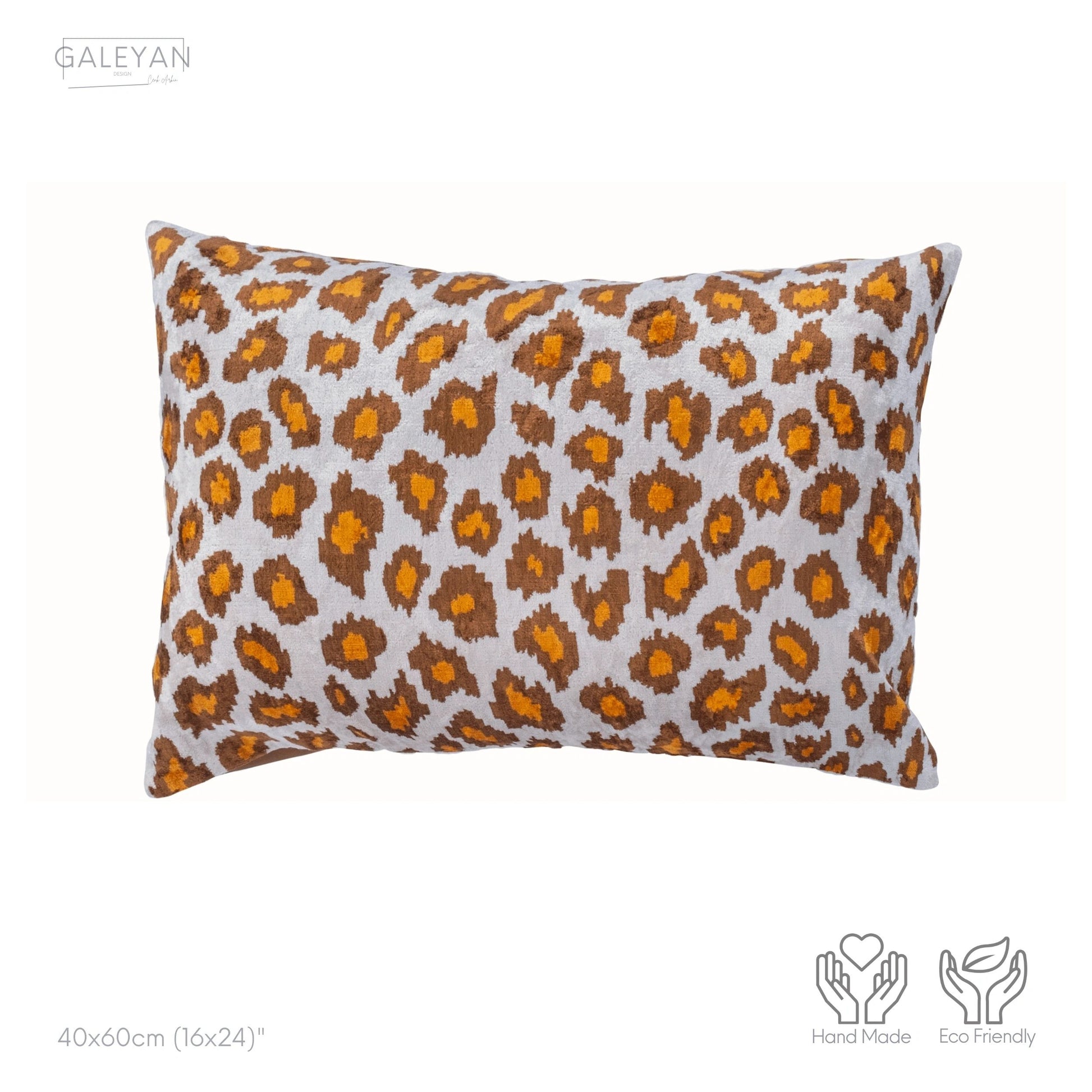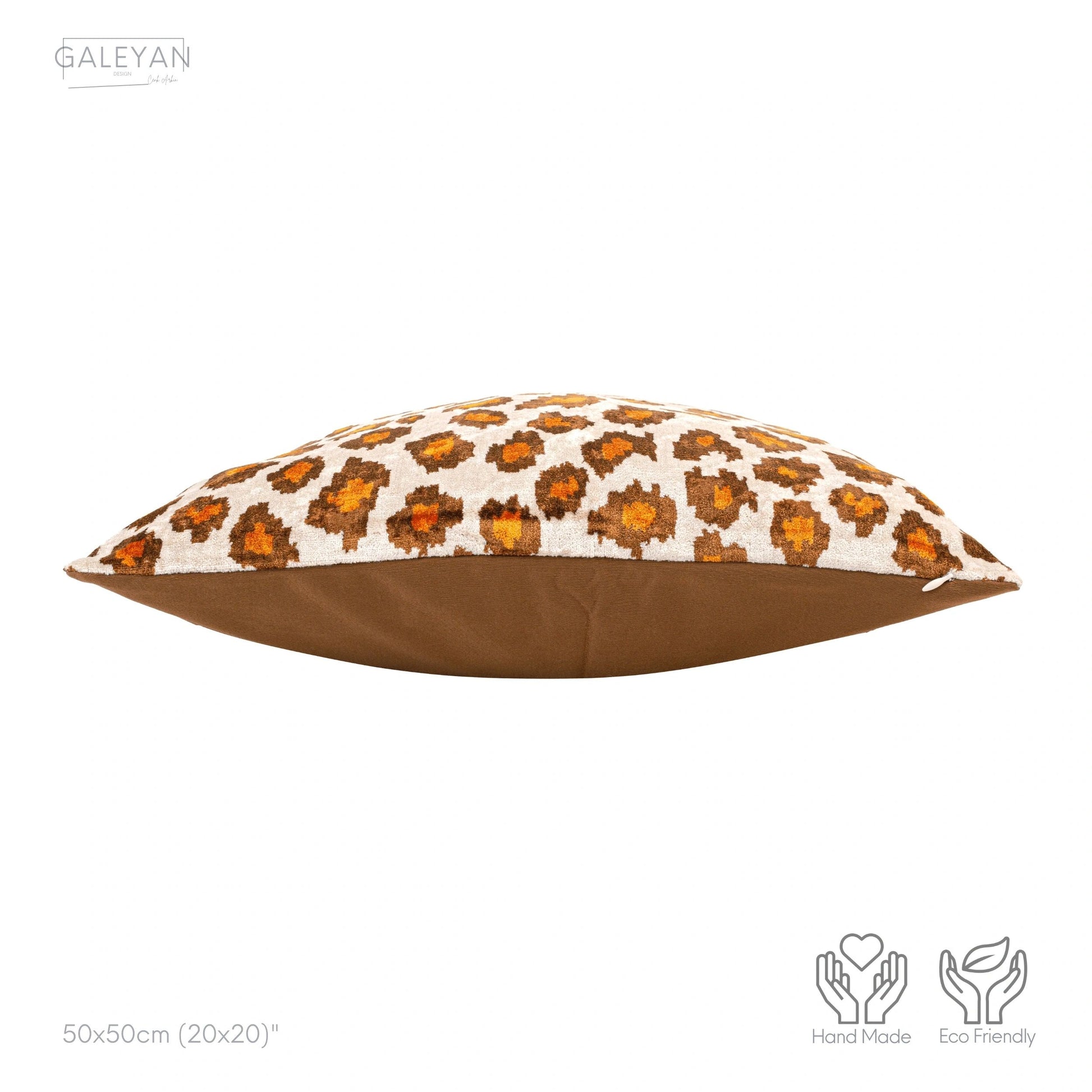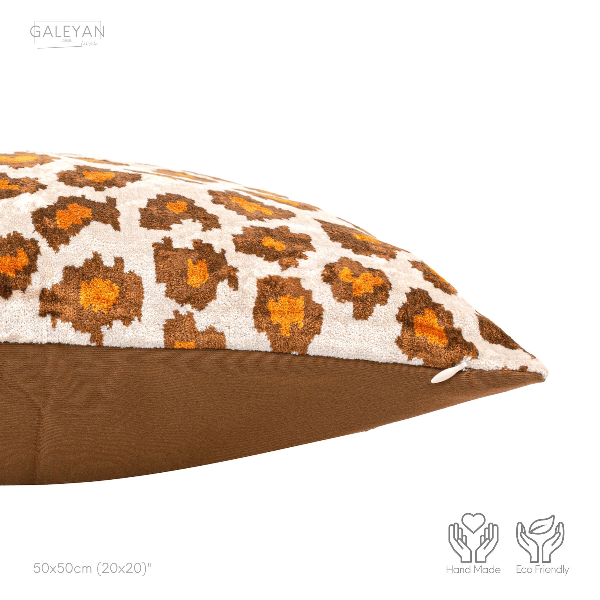 Luxury handmade ikat velvet pillow cover Brown & White & Orange