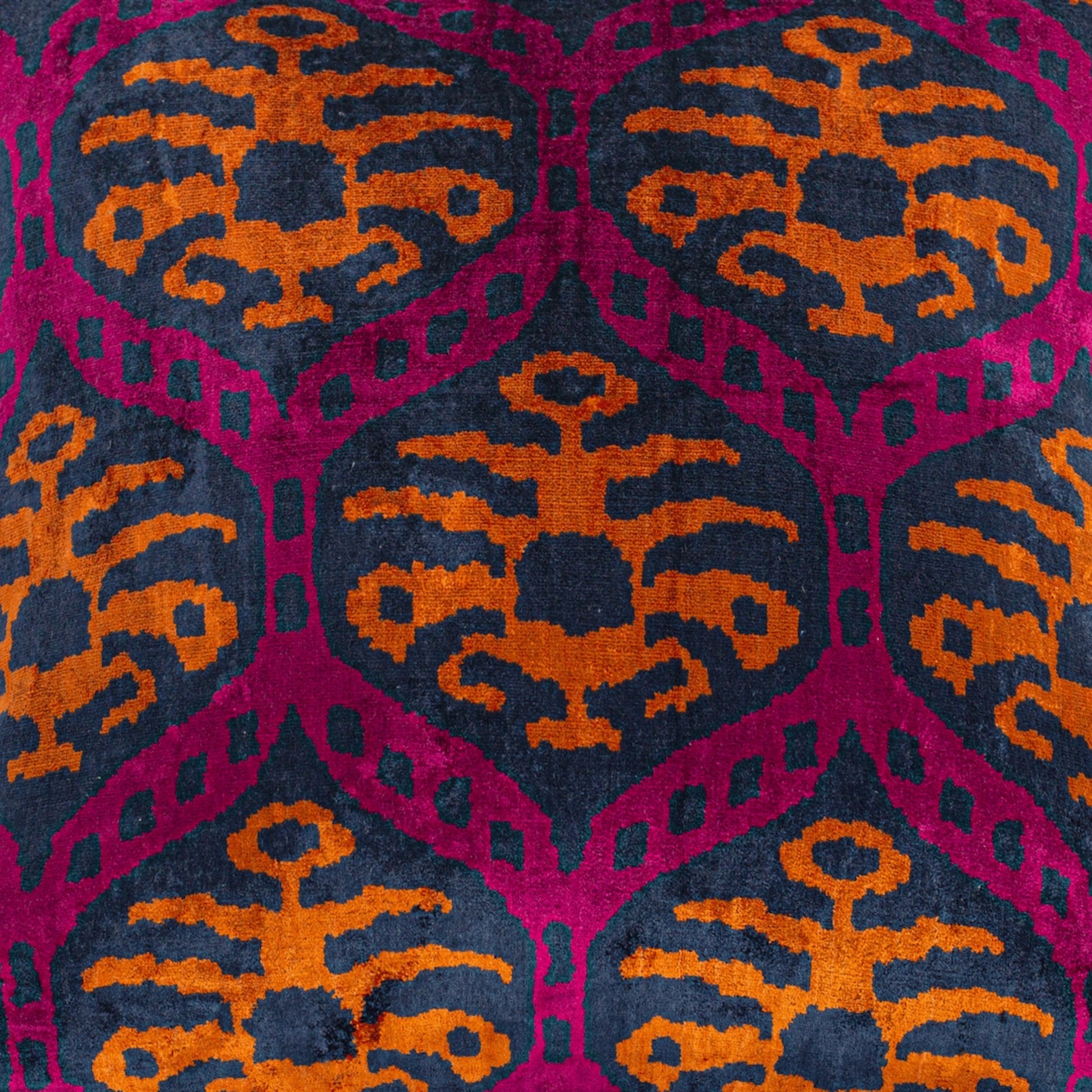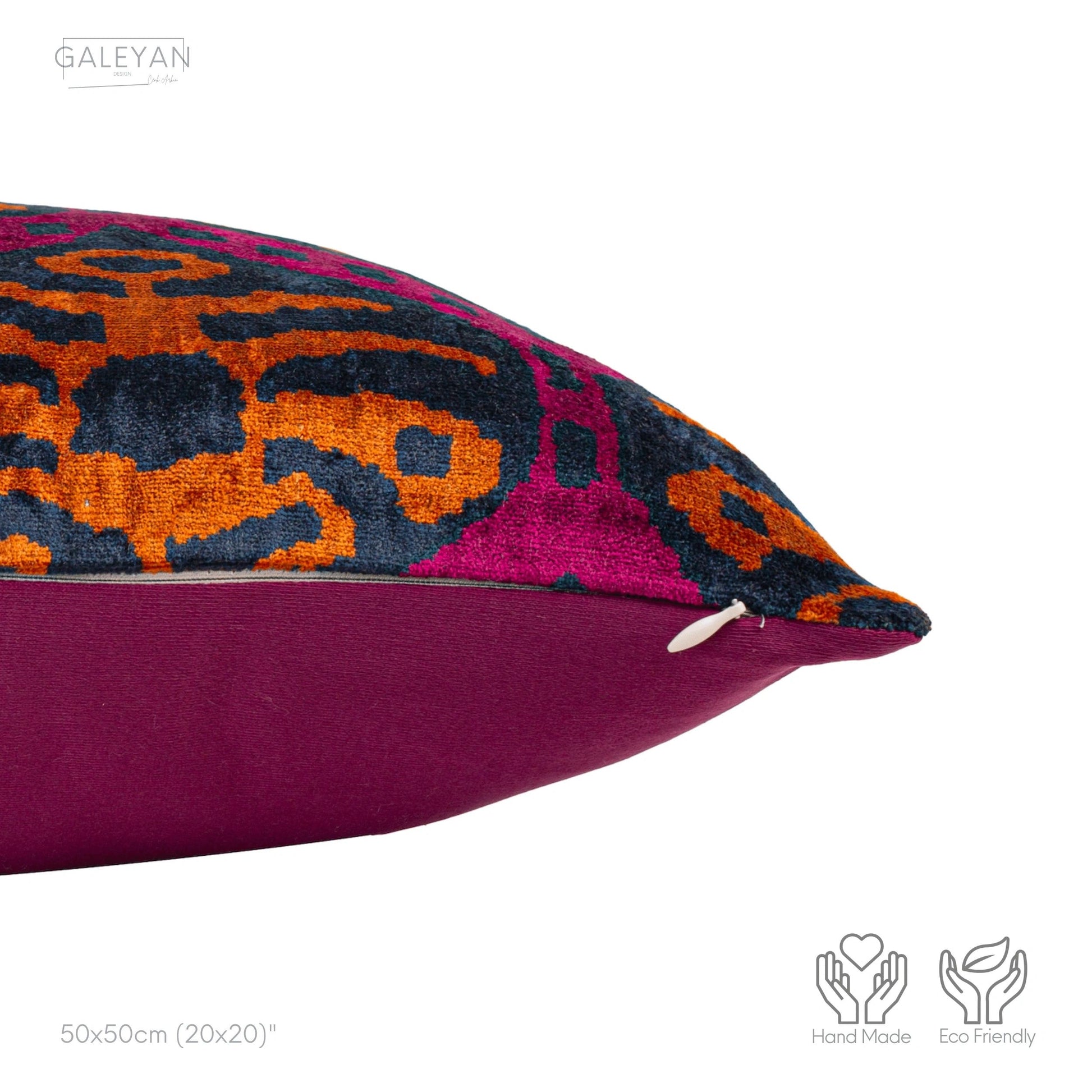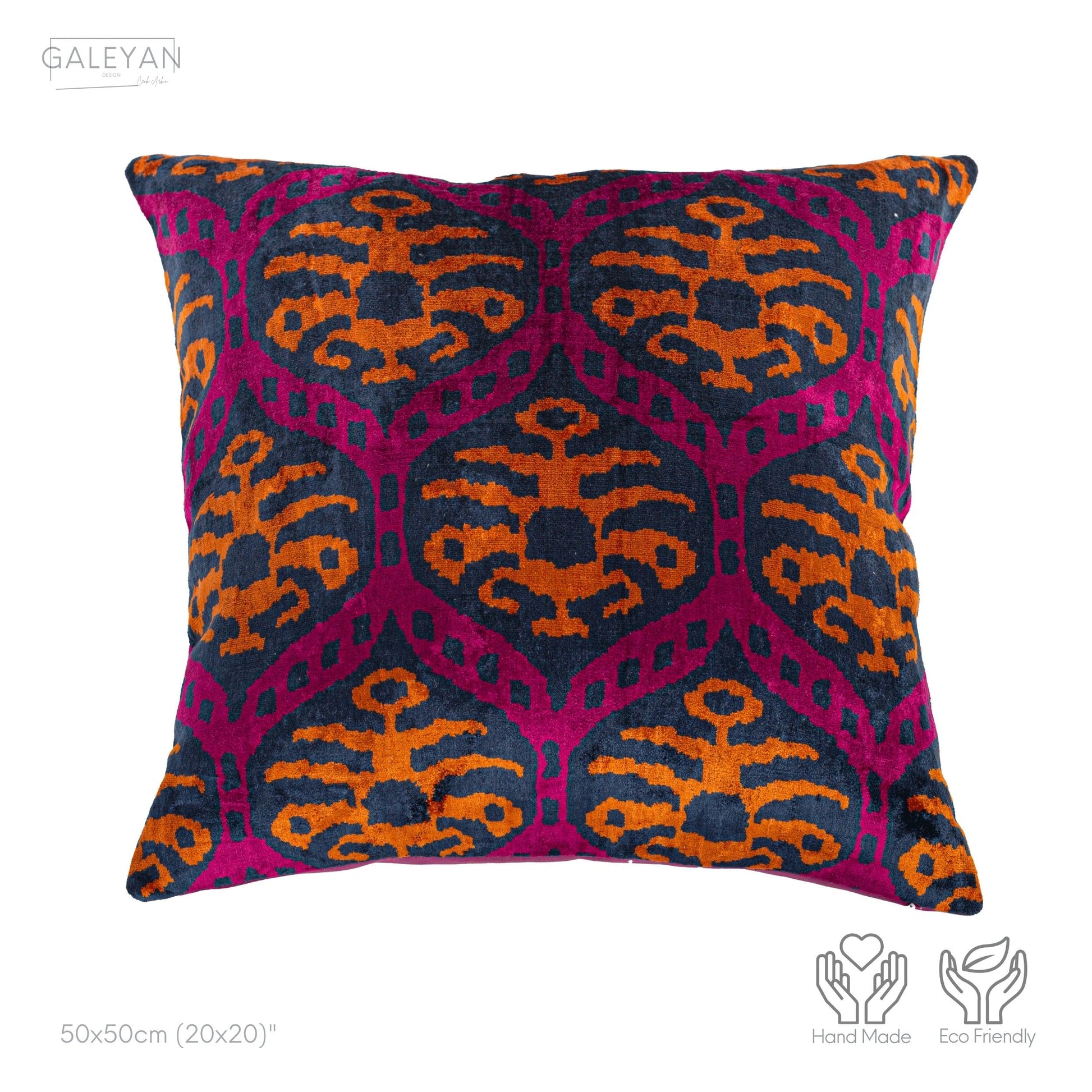 Luxury handmade ikat velvet pillow cover Fuchsia & Orange & Navy