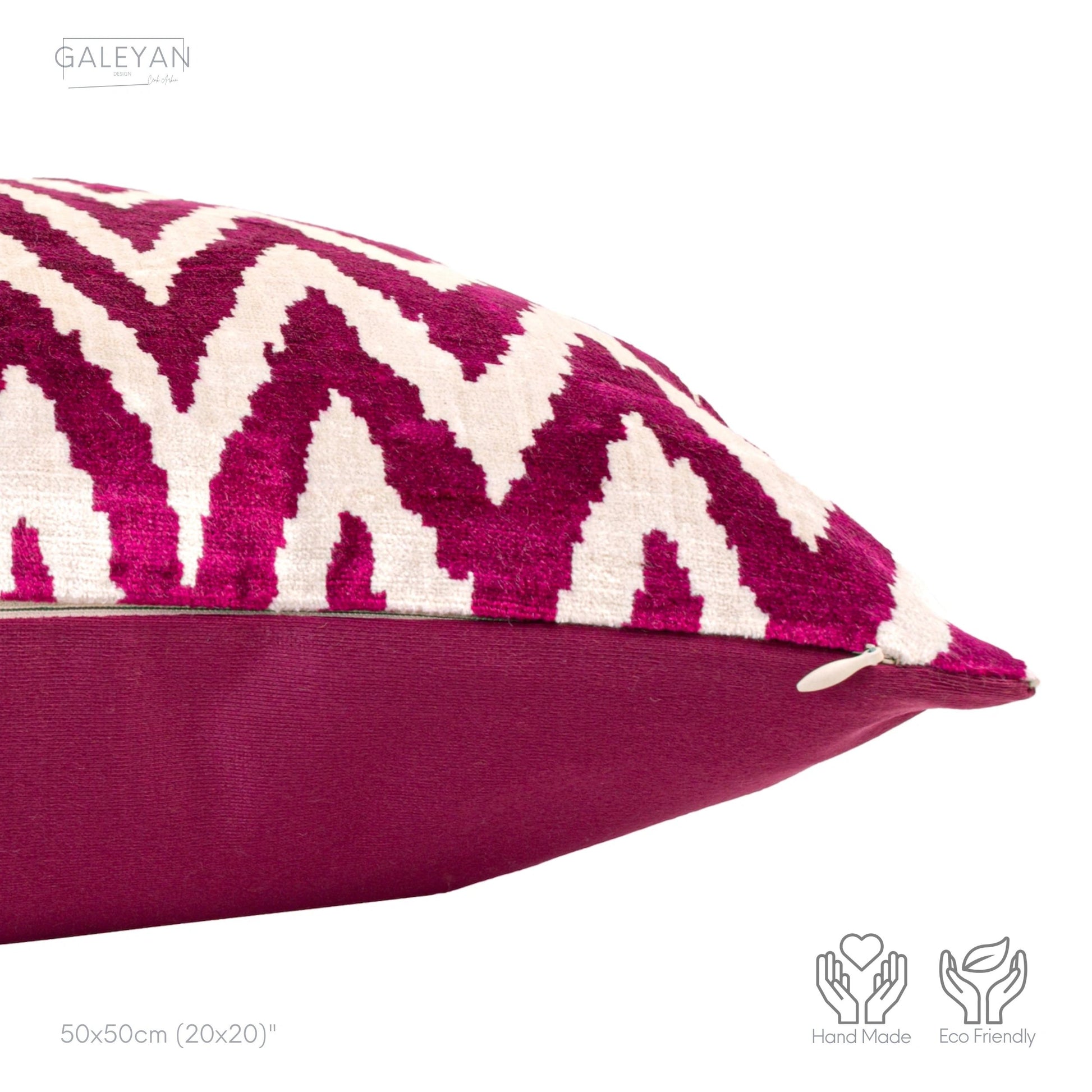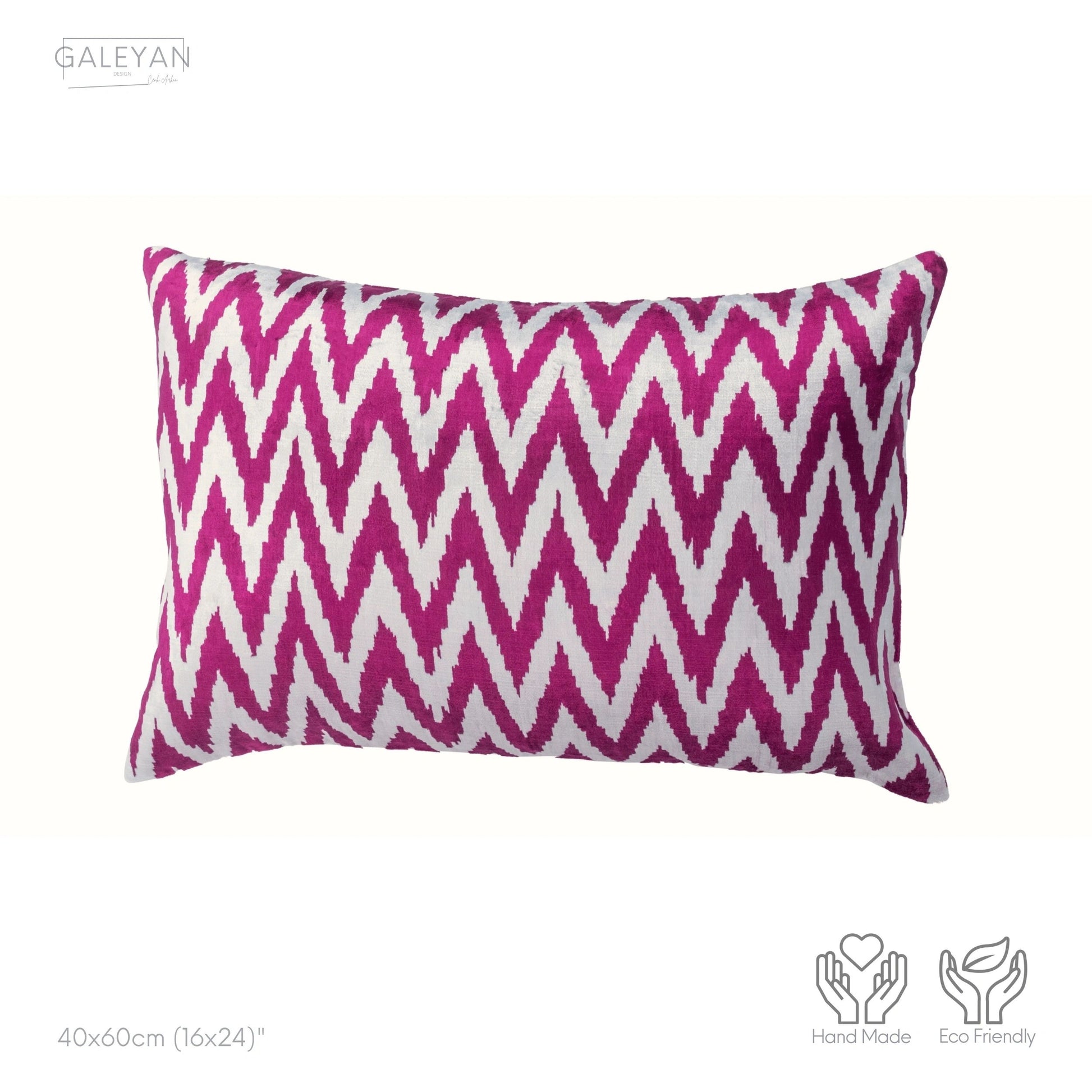 Luxury handmade ikat velvet pillow cover Fuchsia & White