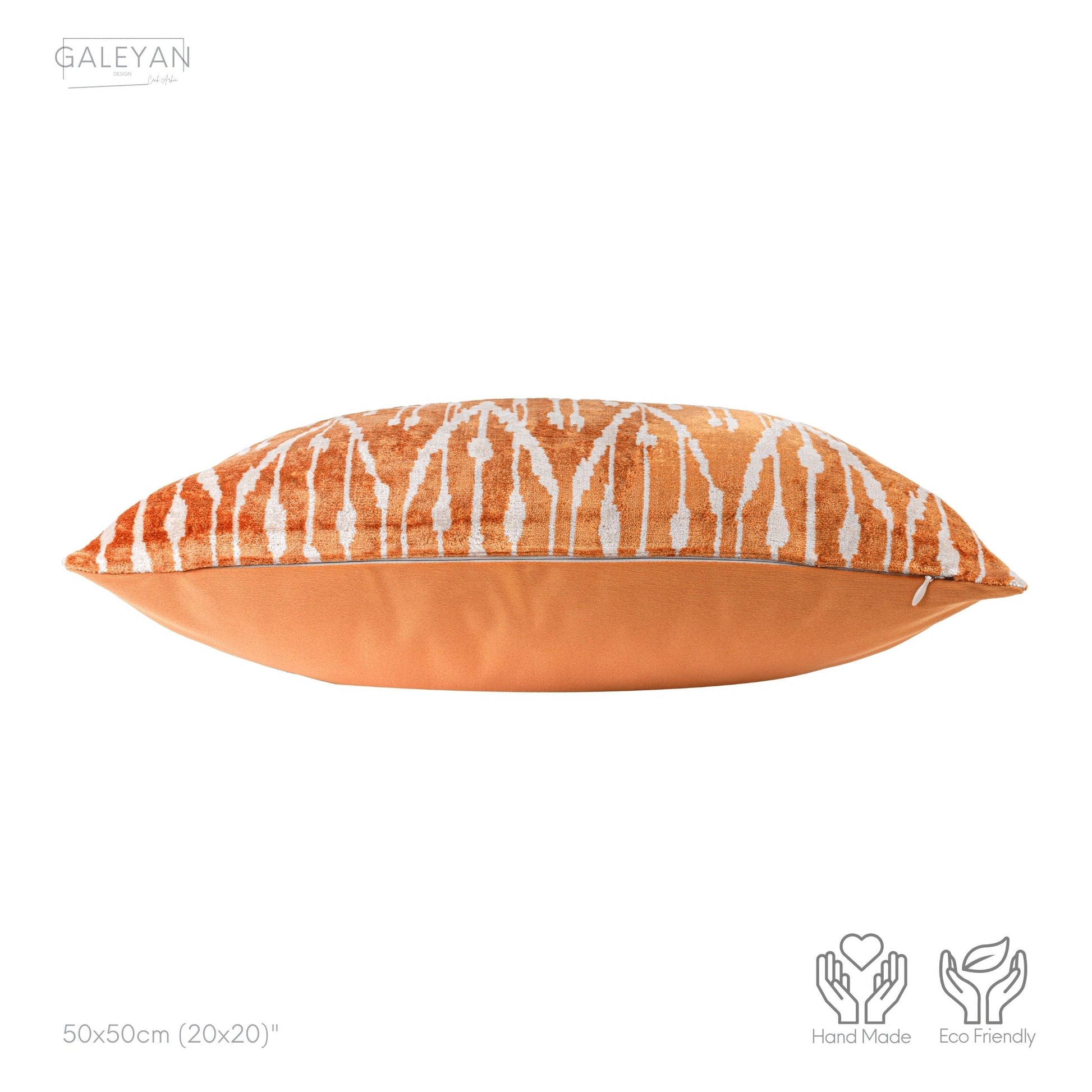 ikat velvet throw pillow cover adds a touch of luxury and glam to any room. With an OEKO-TEX® Standard 100 certification, our product is safe and skin-friendly, a perfect choice for those who suffer from sensitive skin. This modern pillow cover with a traditional design can be unique just for you in different sizes. Get in touch with us to personalise it.