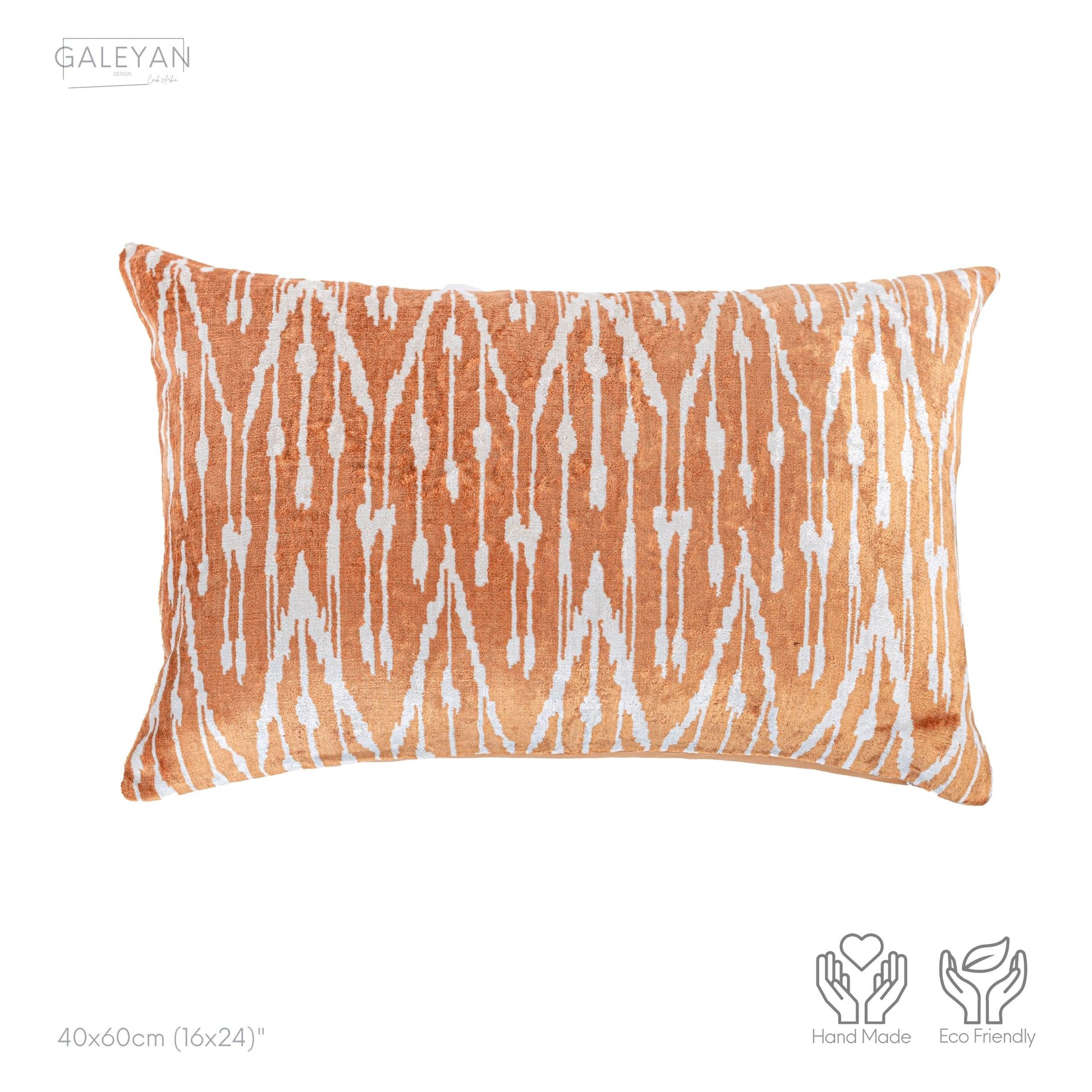 Luxury handmade ikat velvet pillow cover Off White & Cinnamon