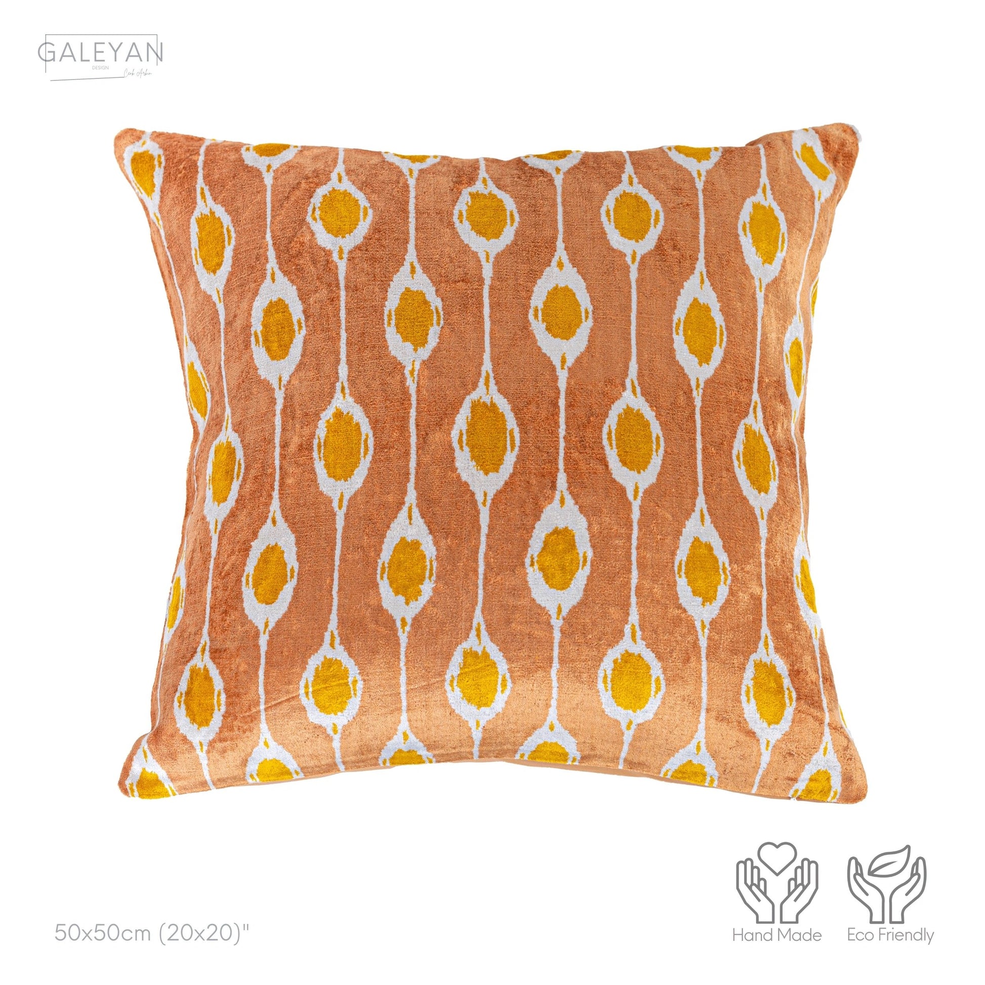 ikat velvet throw pillow cover adds a touch of luxury and glam to any room. With an OEKO-TEX® Standard 100 certification, our product is safe and skin-friendly, a perfect choice for those who suffer from sensitive skin. This modern pillow cover with a traditional design can be unique just for you in different sizes. Get in touch with us to personalise it.