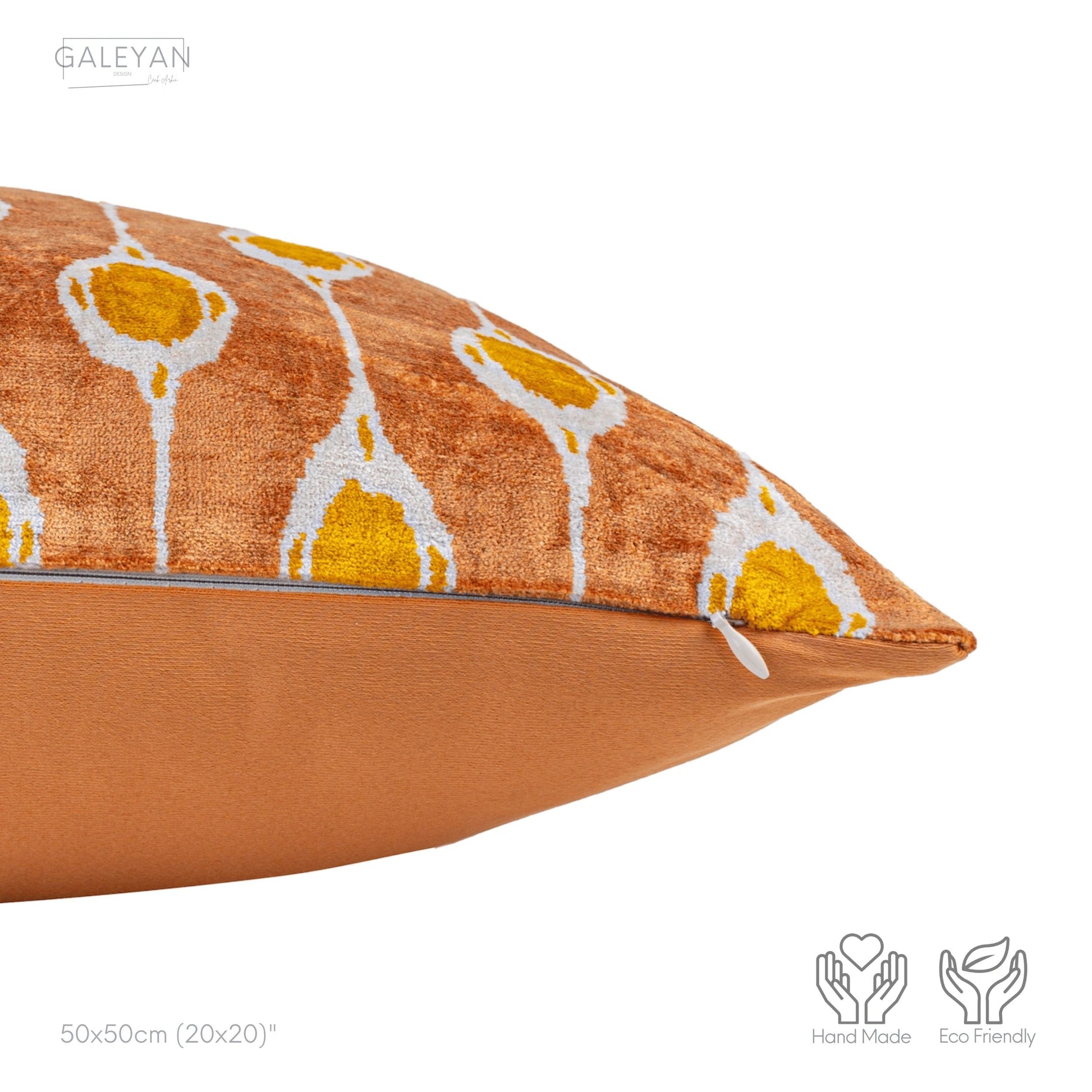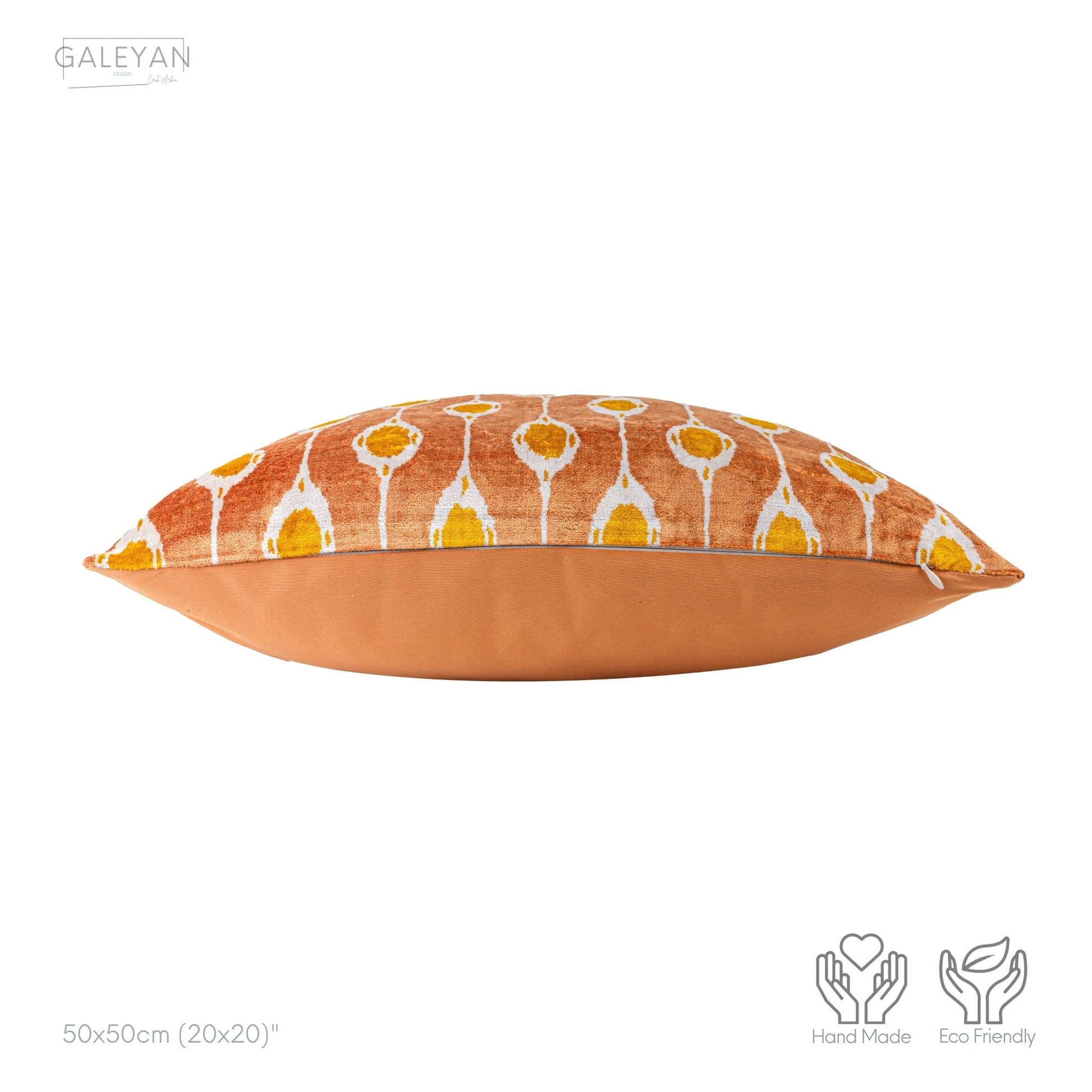 Luxury handmade ikat velvet pillow cover with natural colouring (herbal dyeing), hidden zippered, front side 100% silk velvet | back side single colour velvety touch fabric (double-sided alternatives available on request).