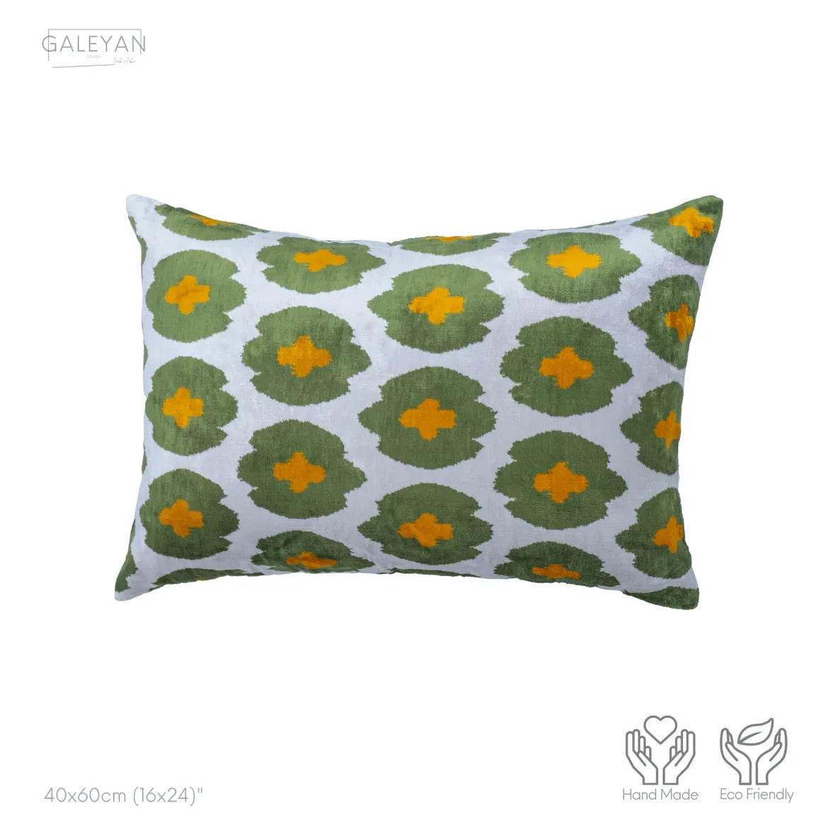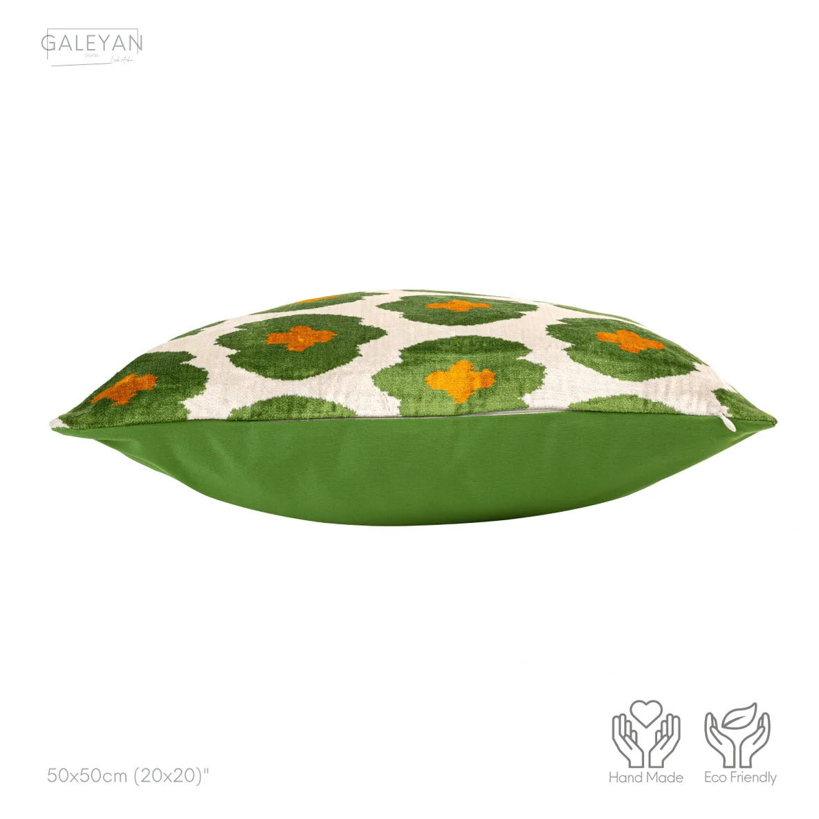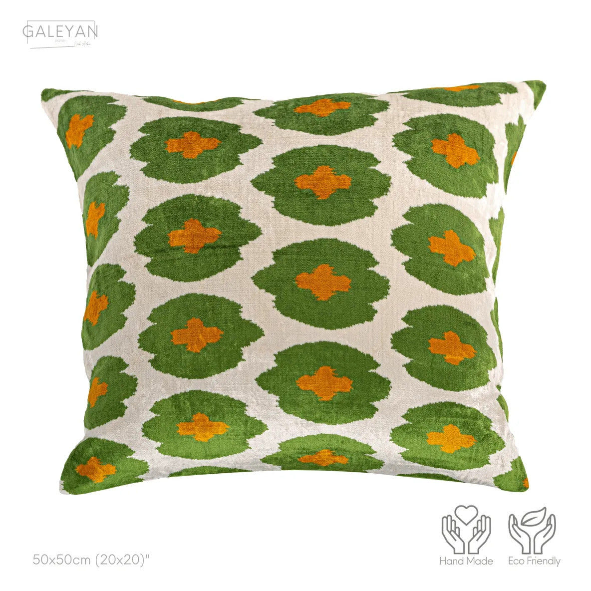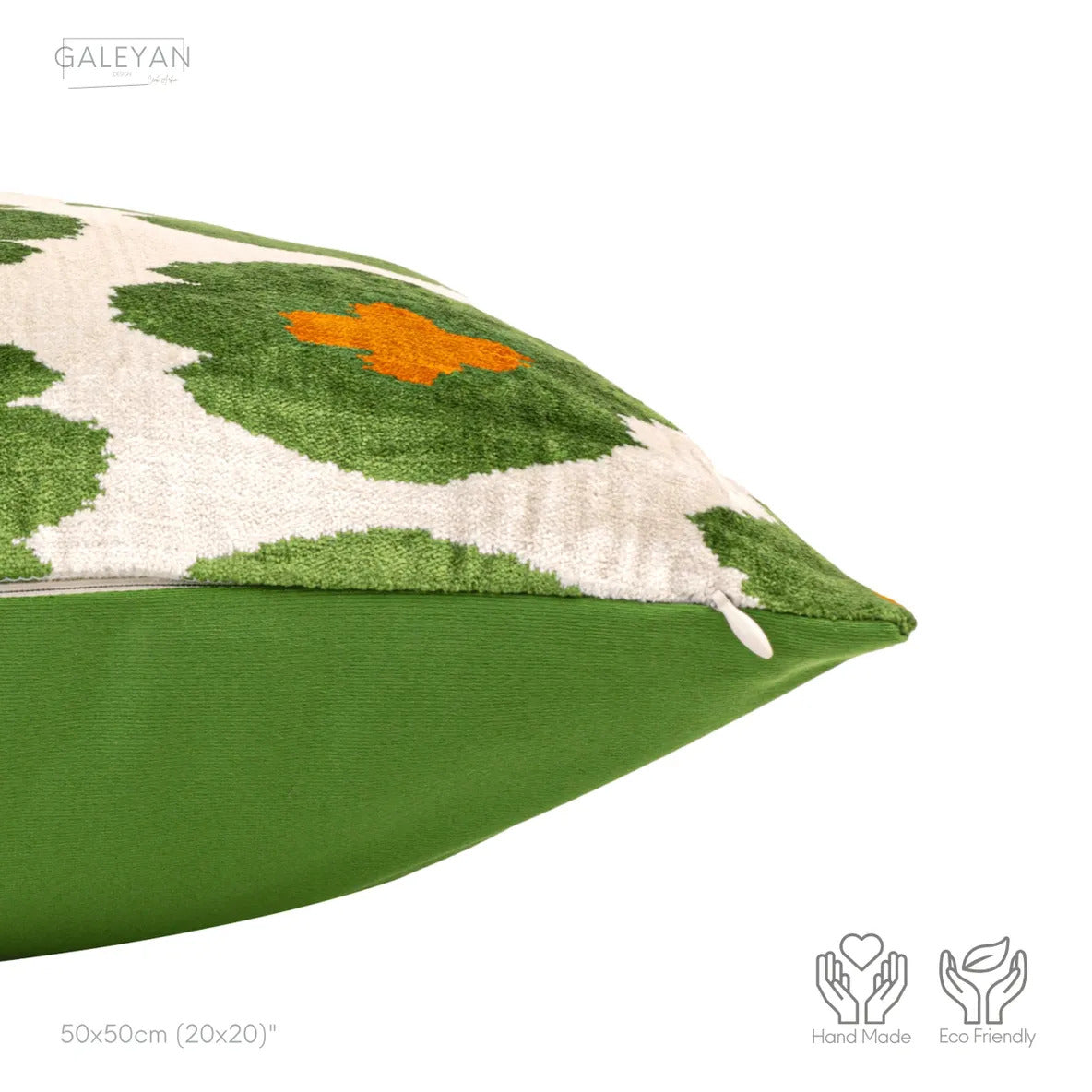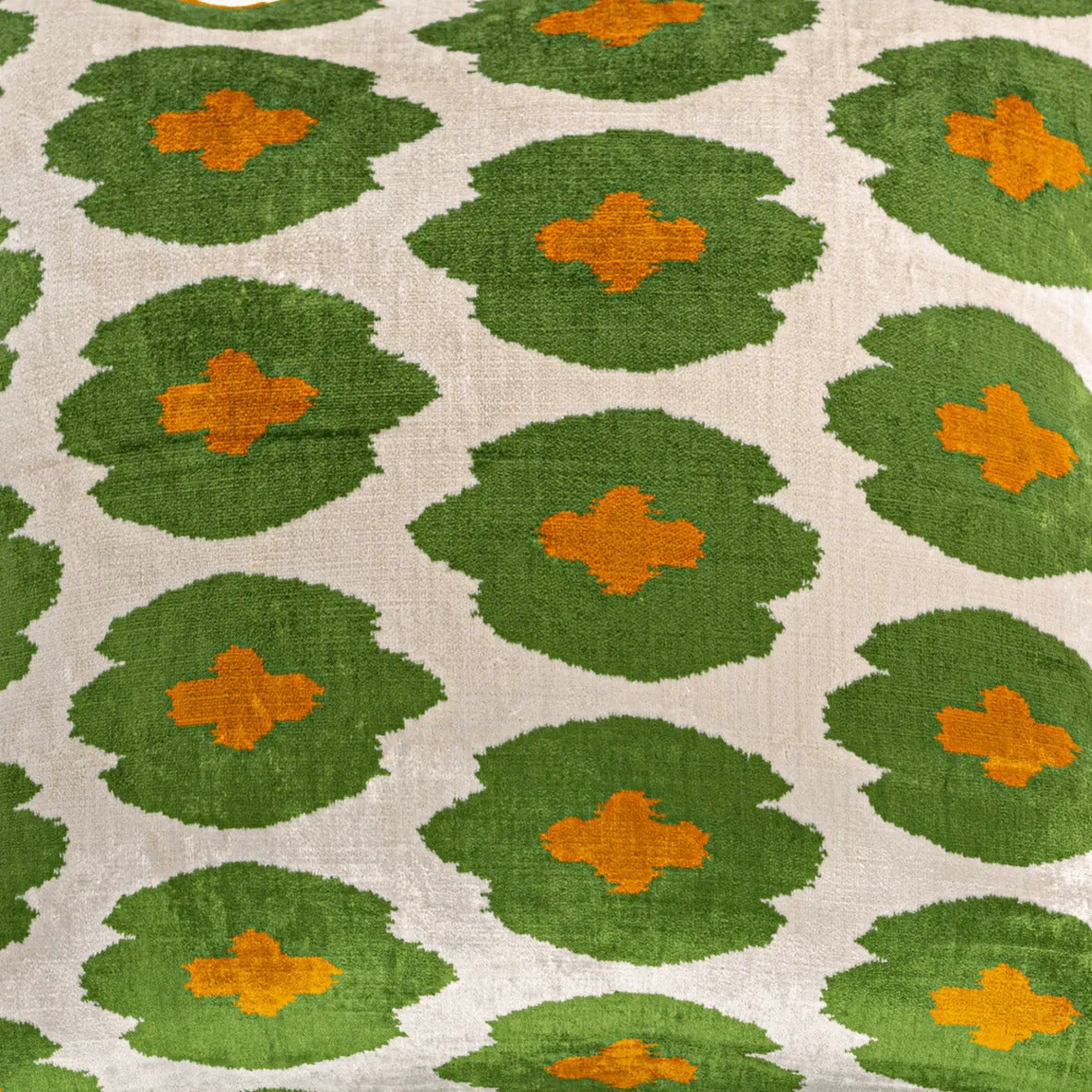 Luxury handmade ikat velvet pillow cover Off White & Green & Orange