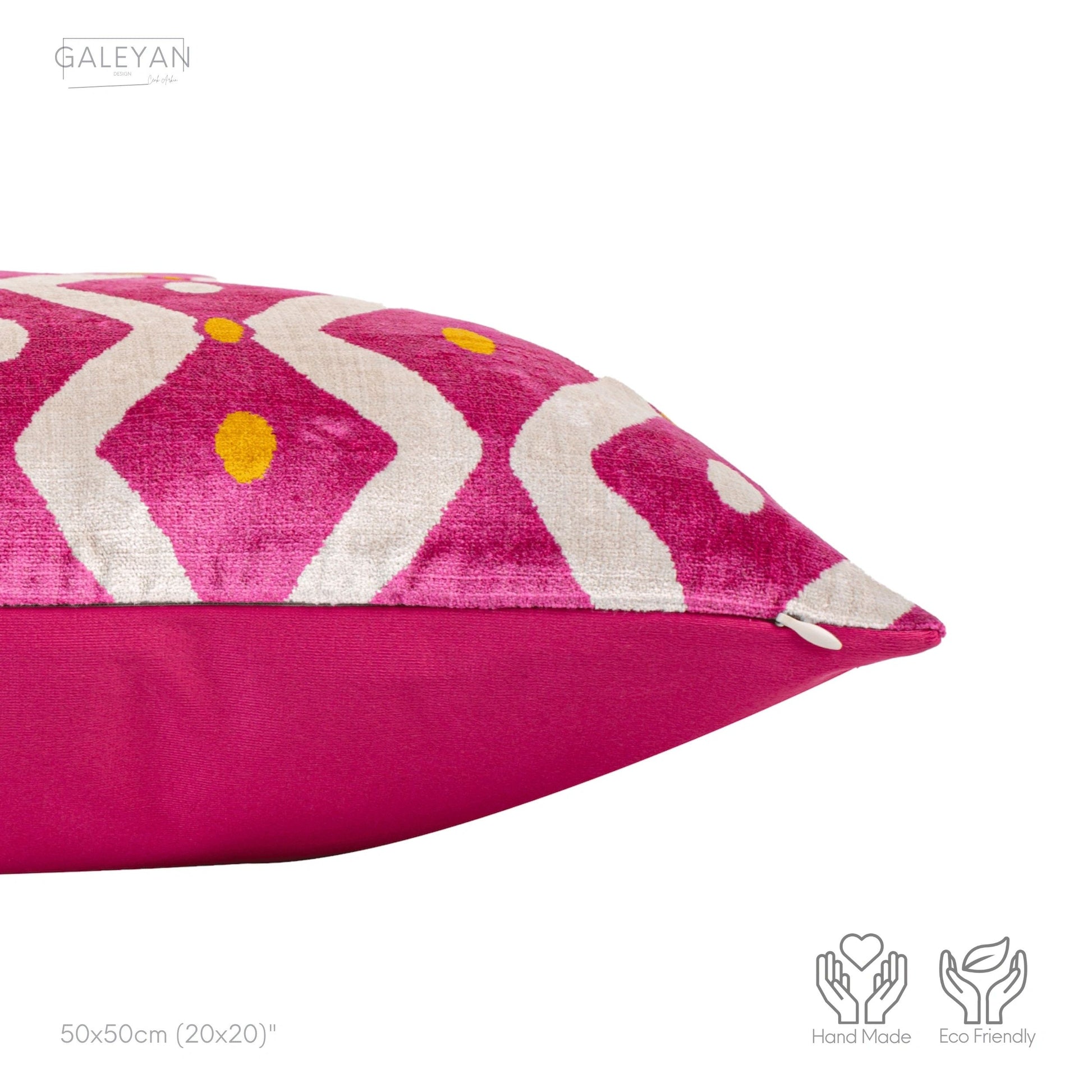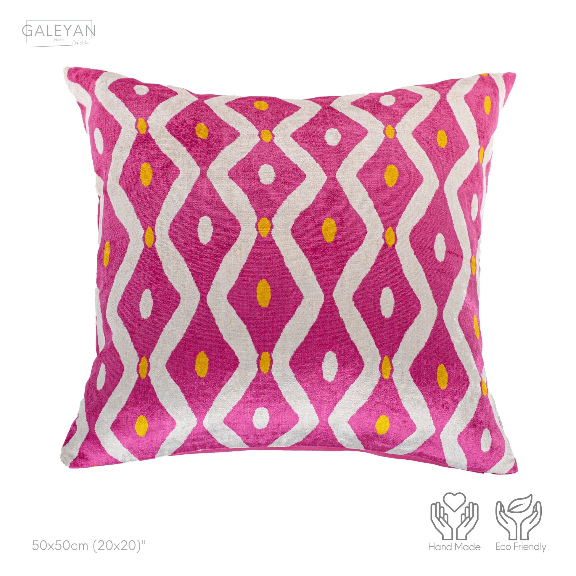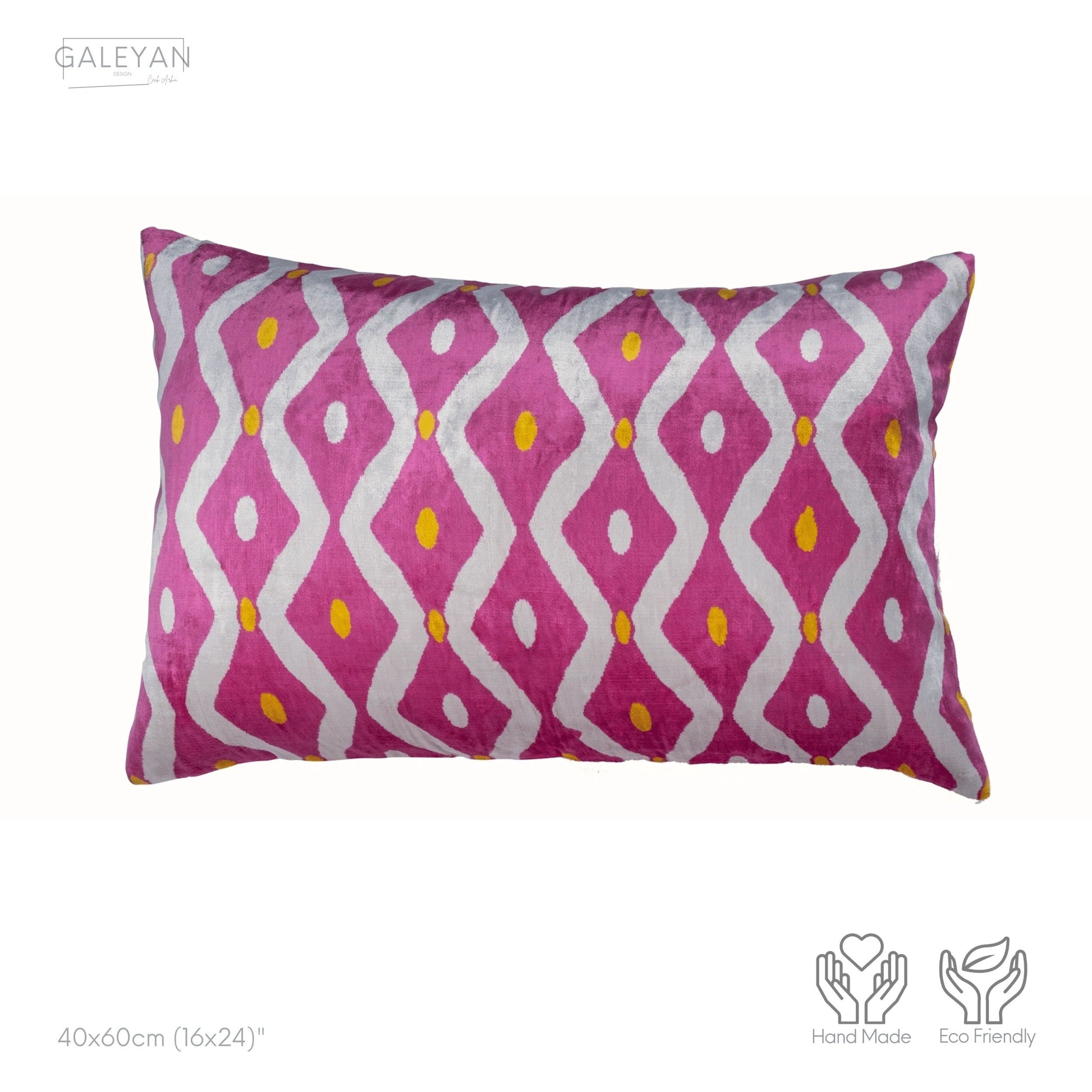 Luxury handmade ikat velvet pillow cover Pink & Orange & White