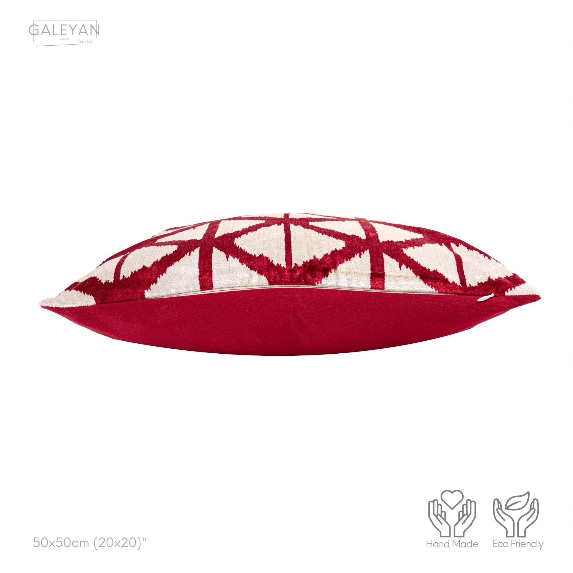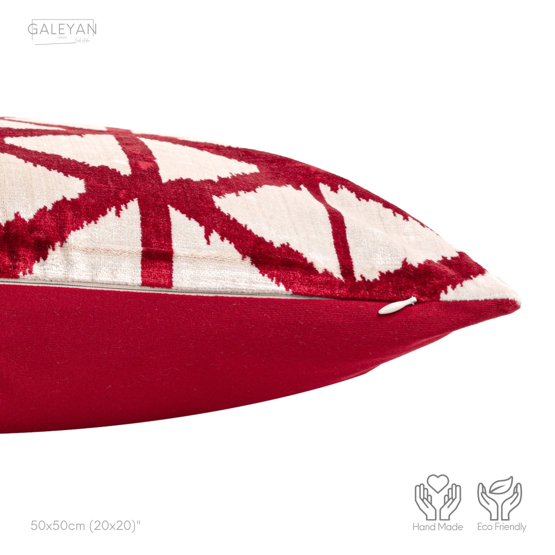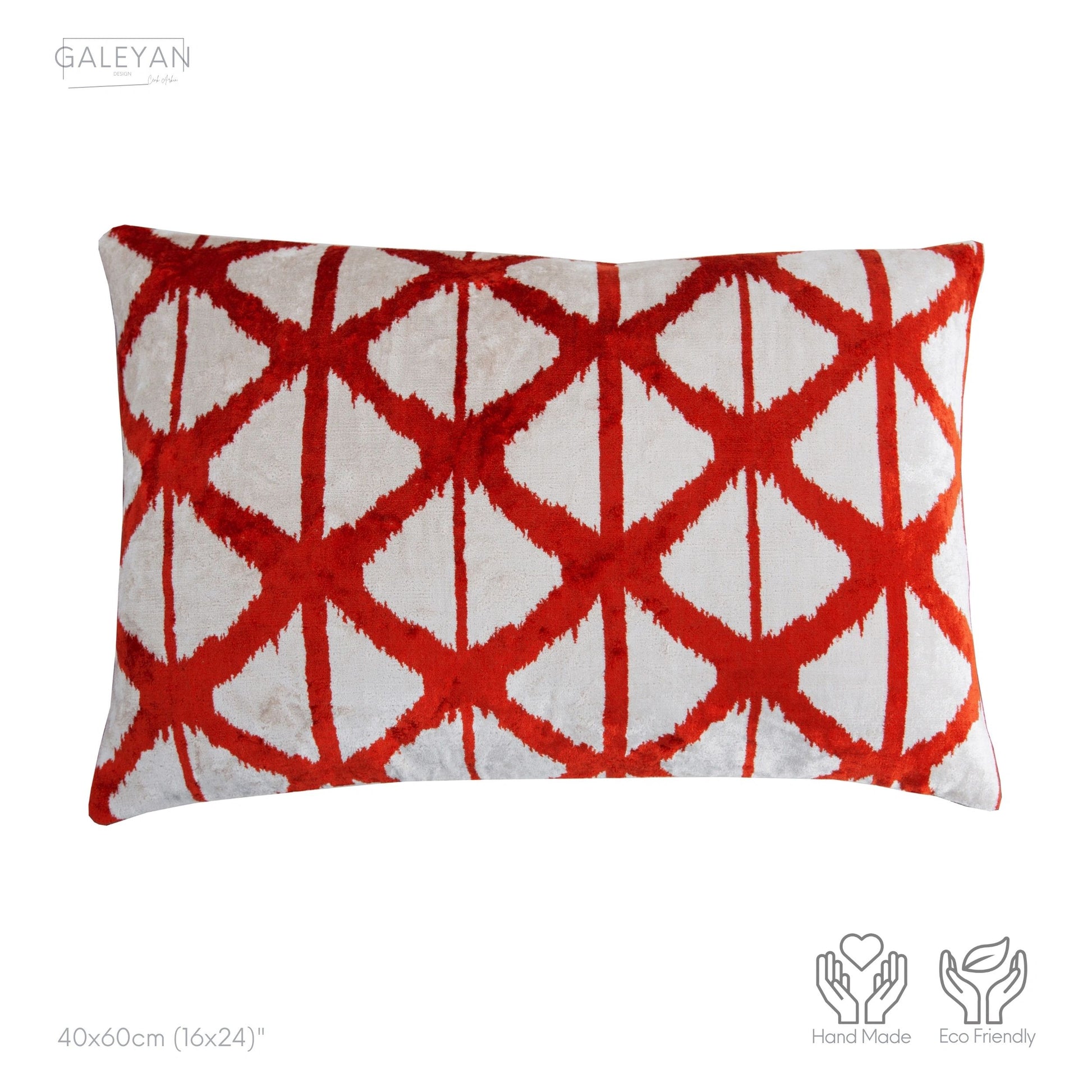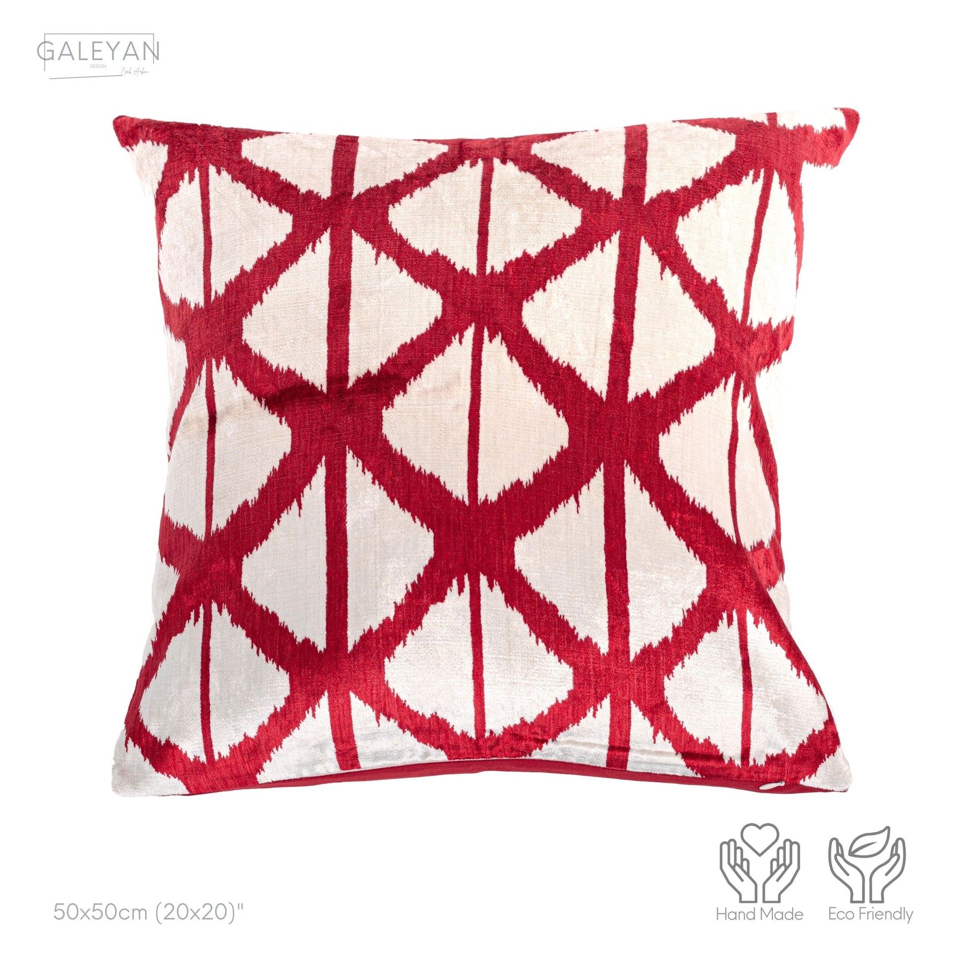 Luxury handmade ikat velvet pillow cover Red & White