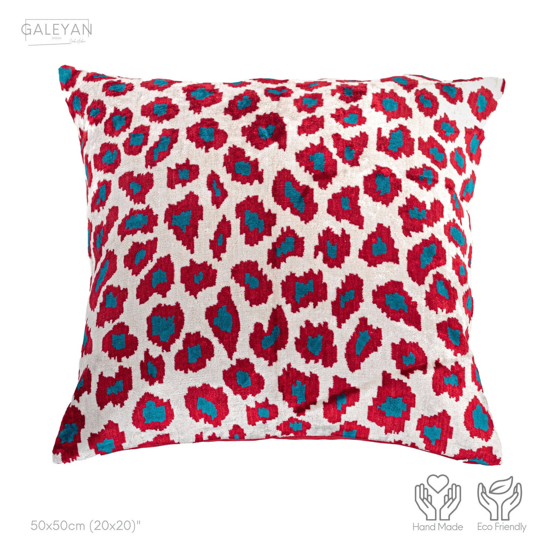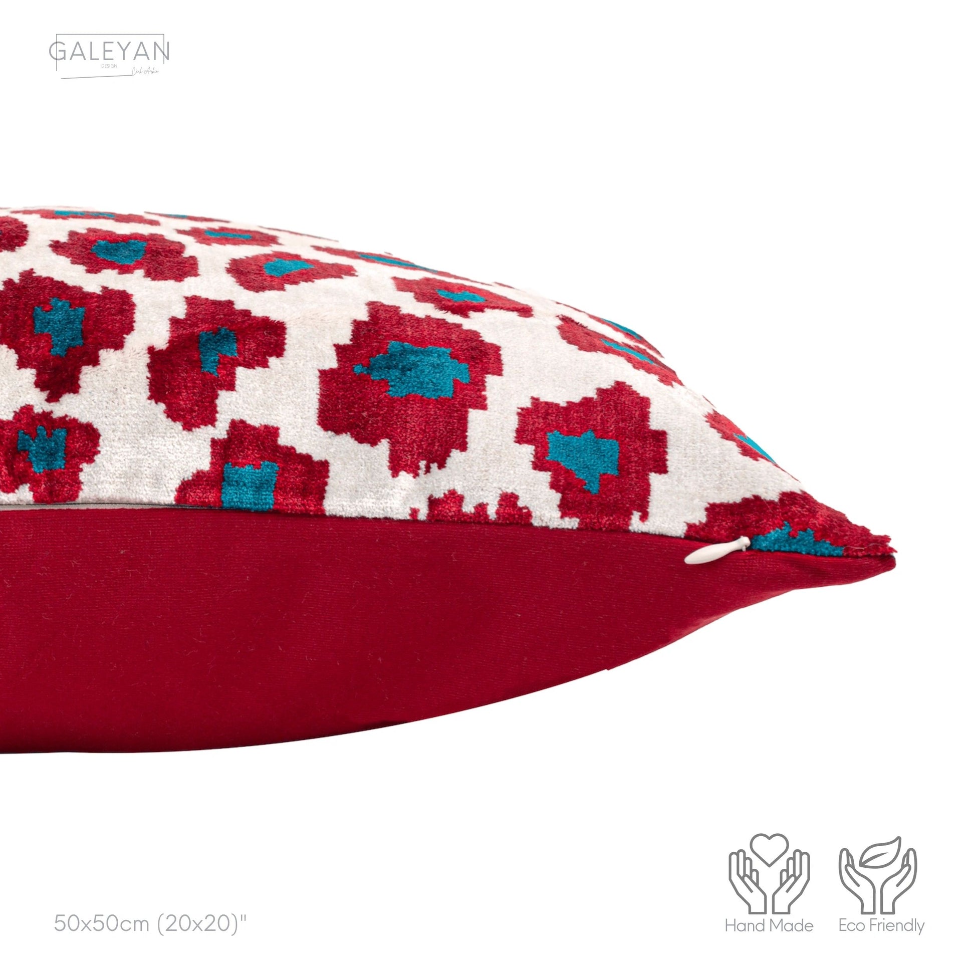 Luxury handmade ikat velvet pillow cover Turquoise Blue & Red & White