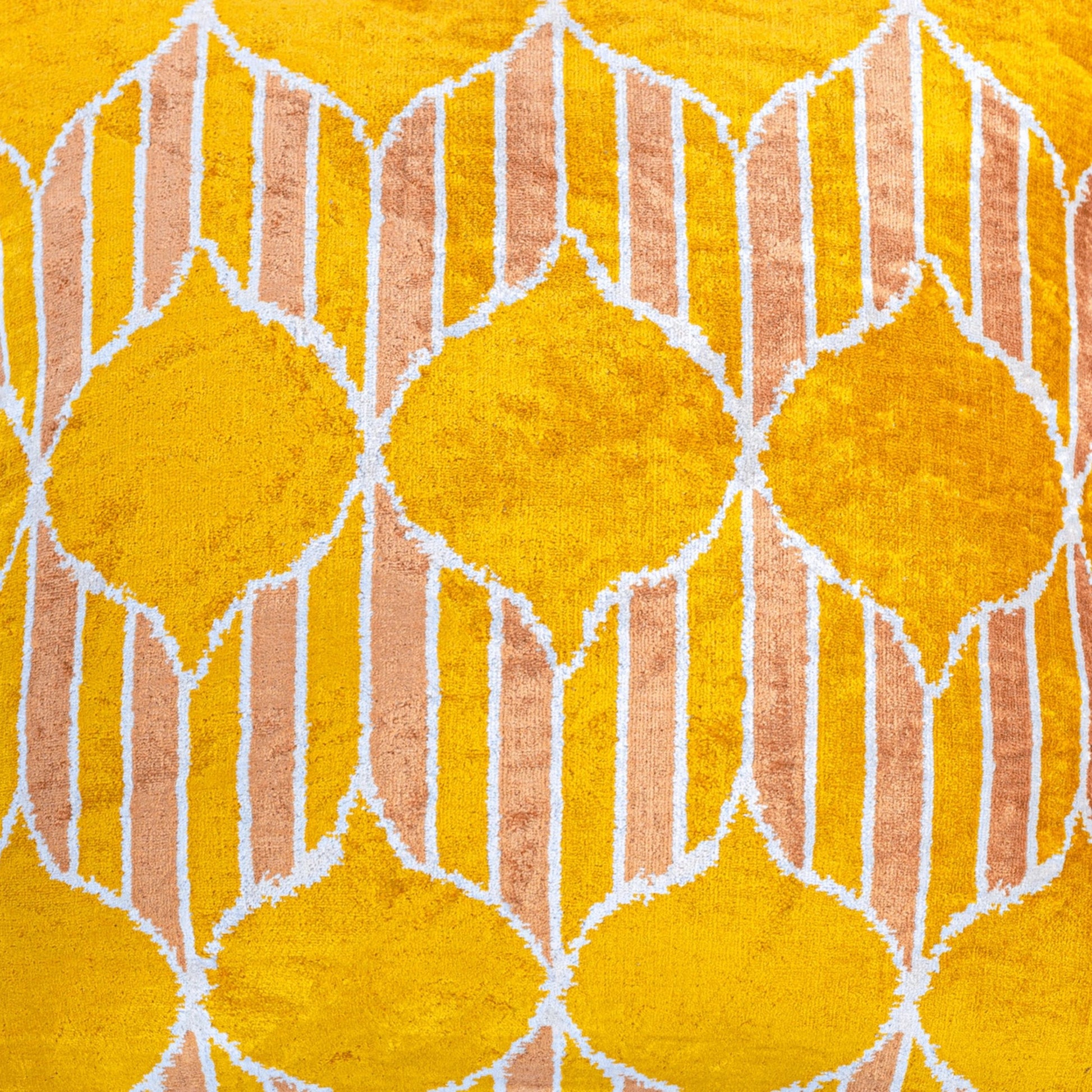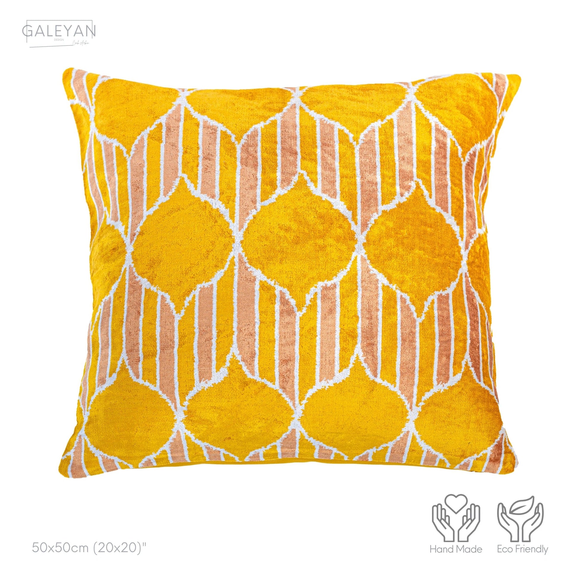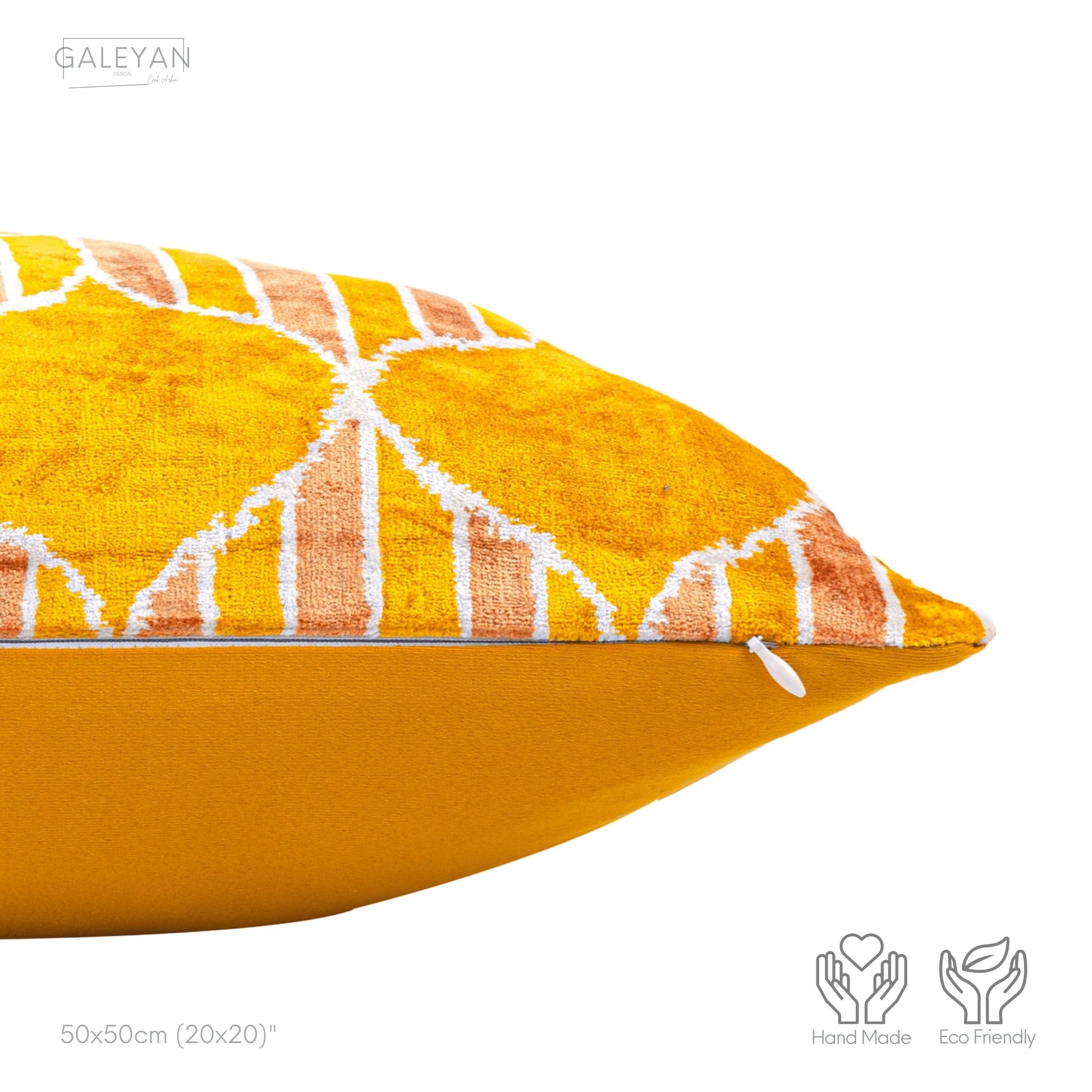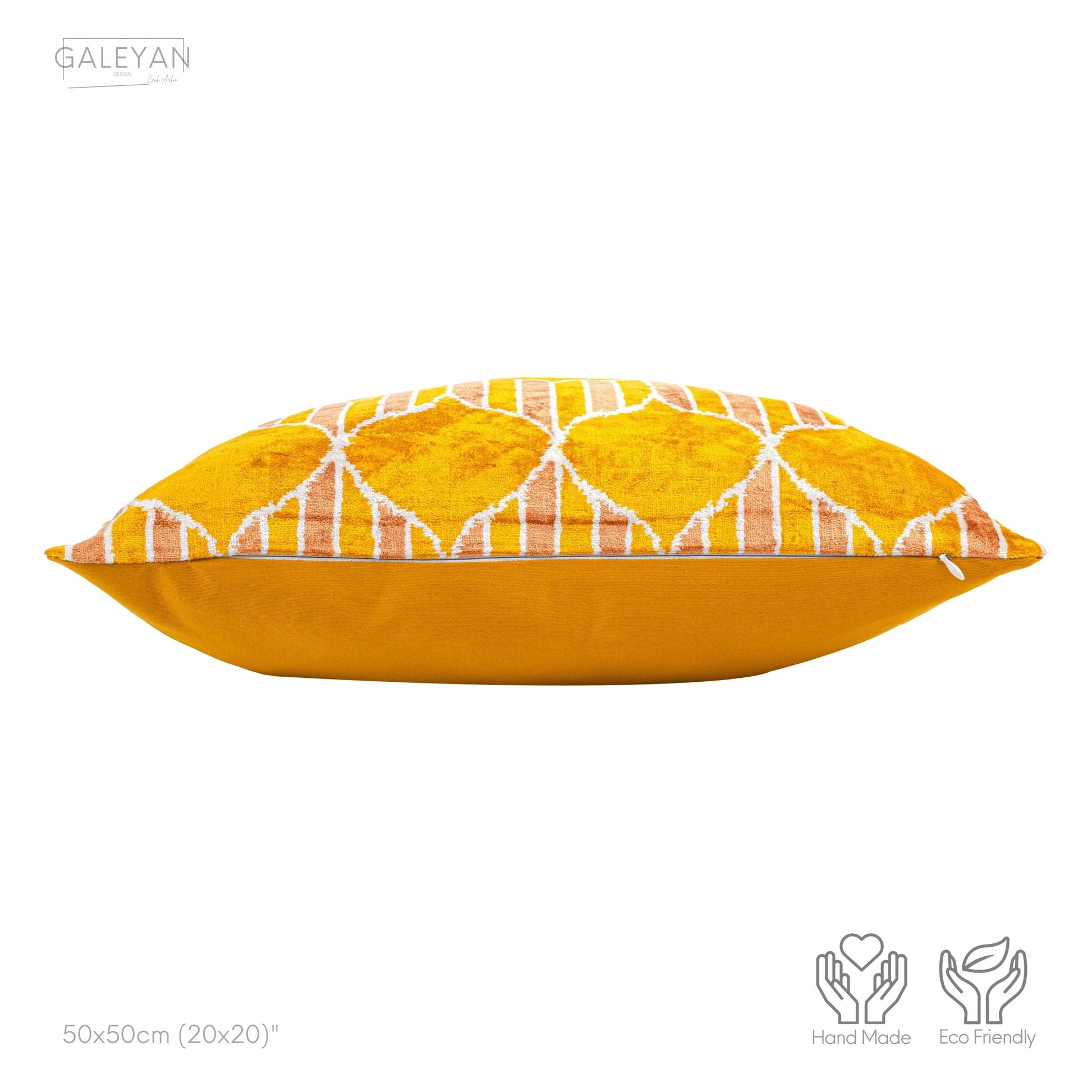 Luxury handmade ikat velvet pillow cover Yellow & Cinnamon & White