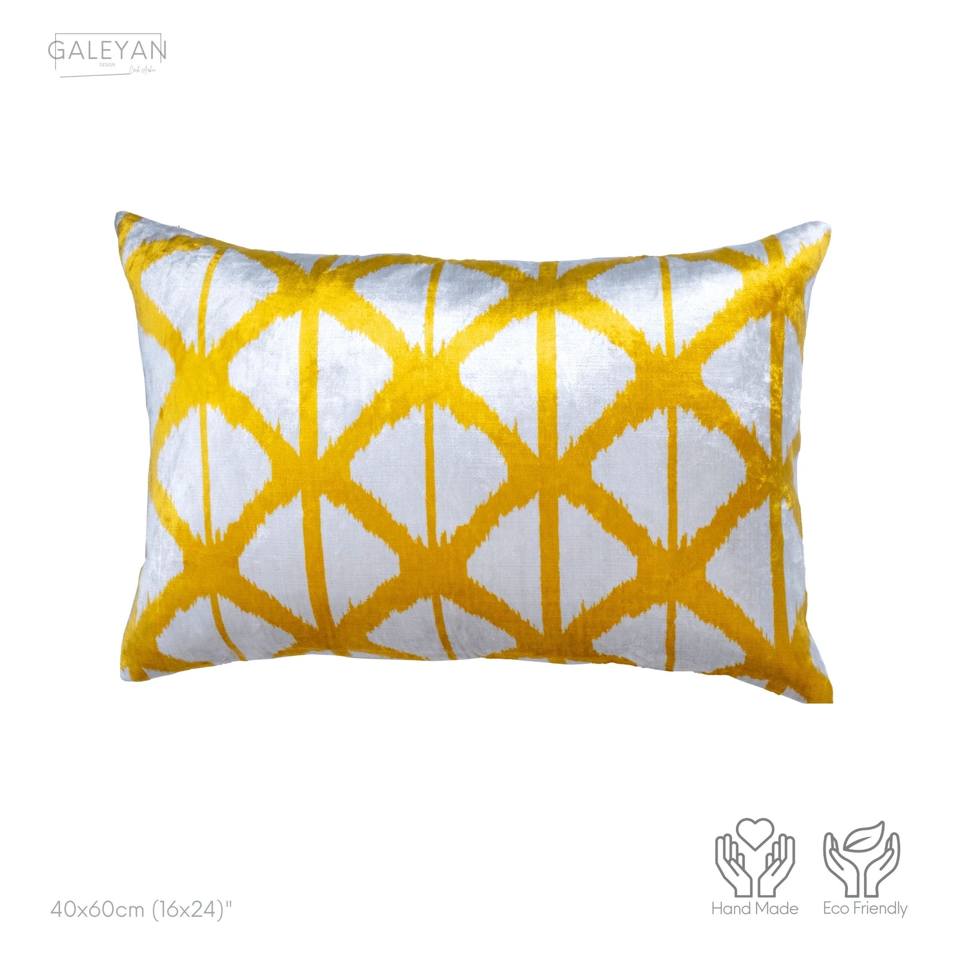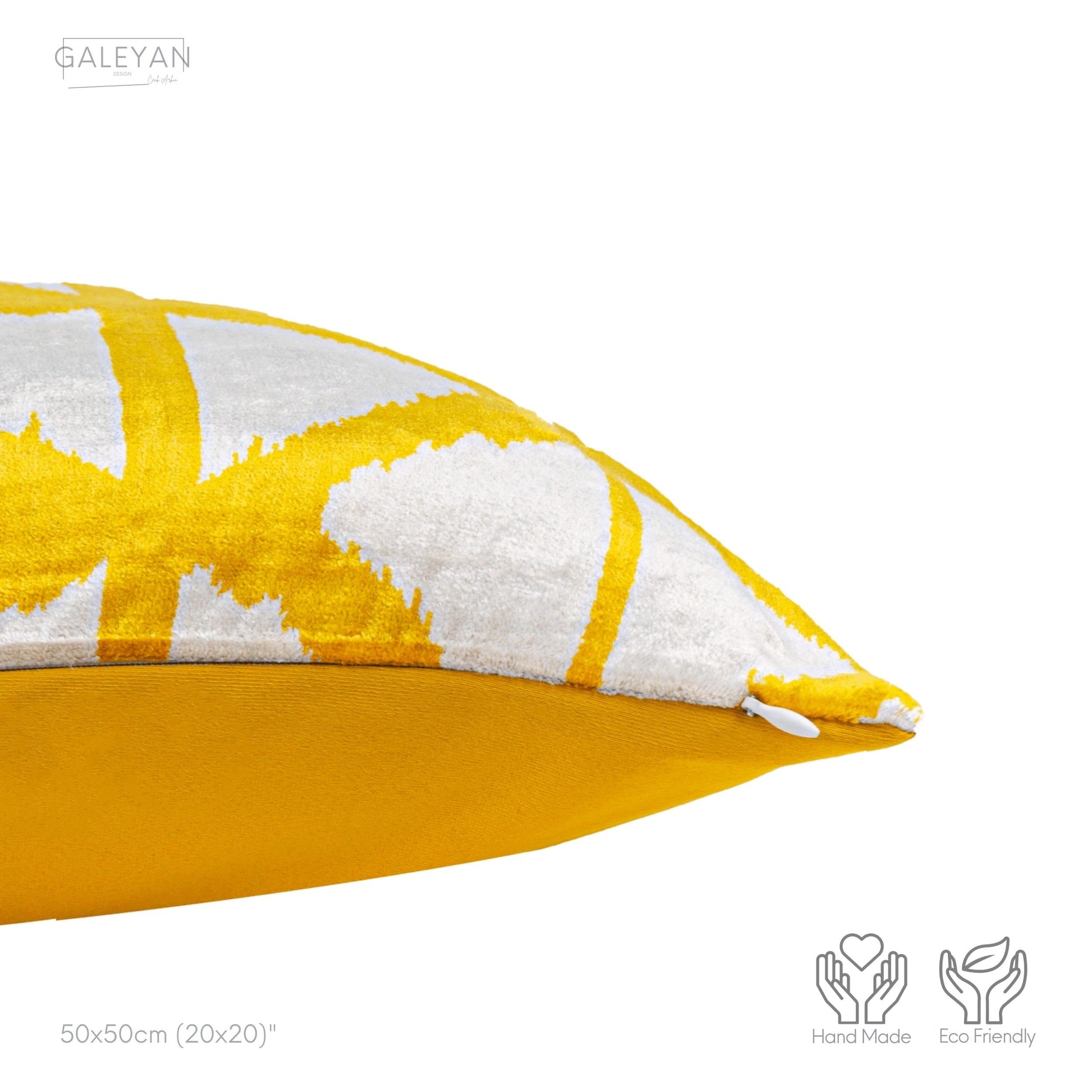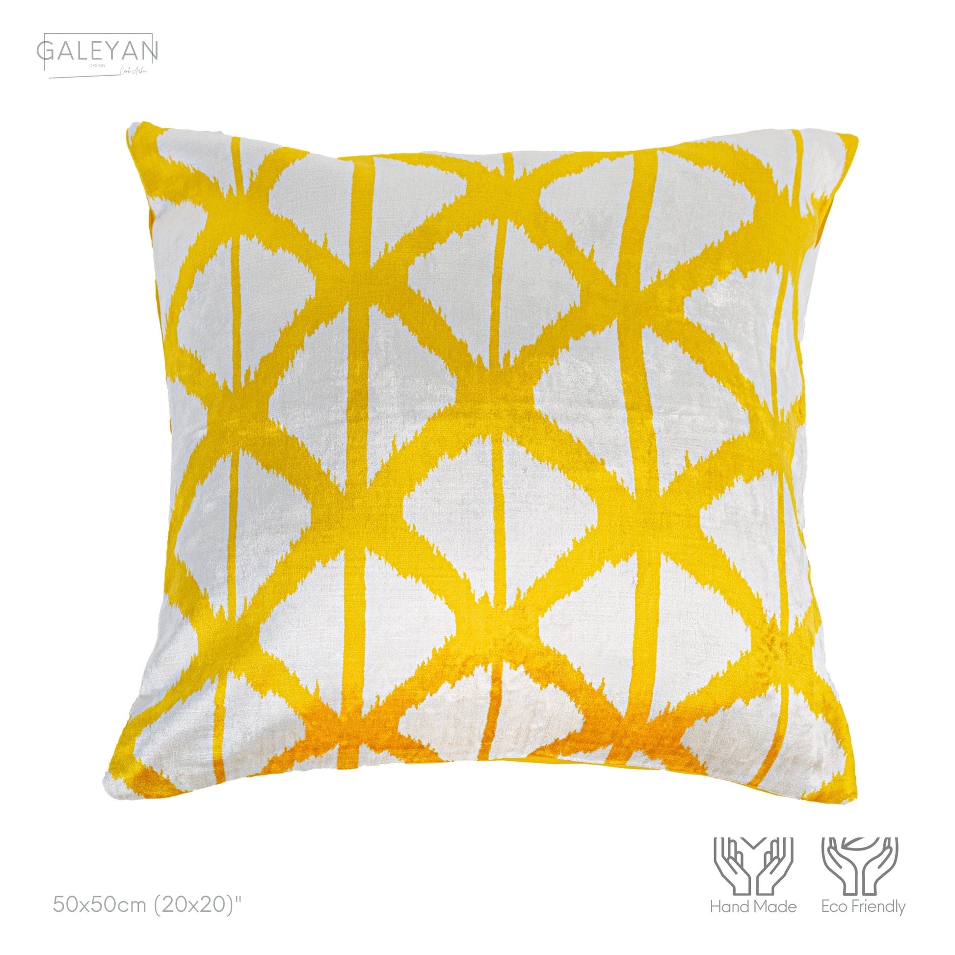 Luxury handmade ikat velvet pillow cover Yellow & White