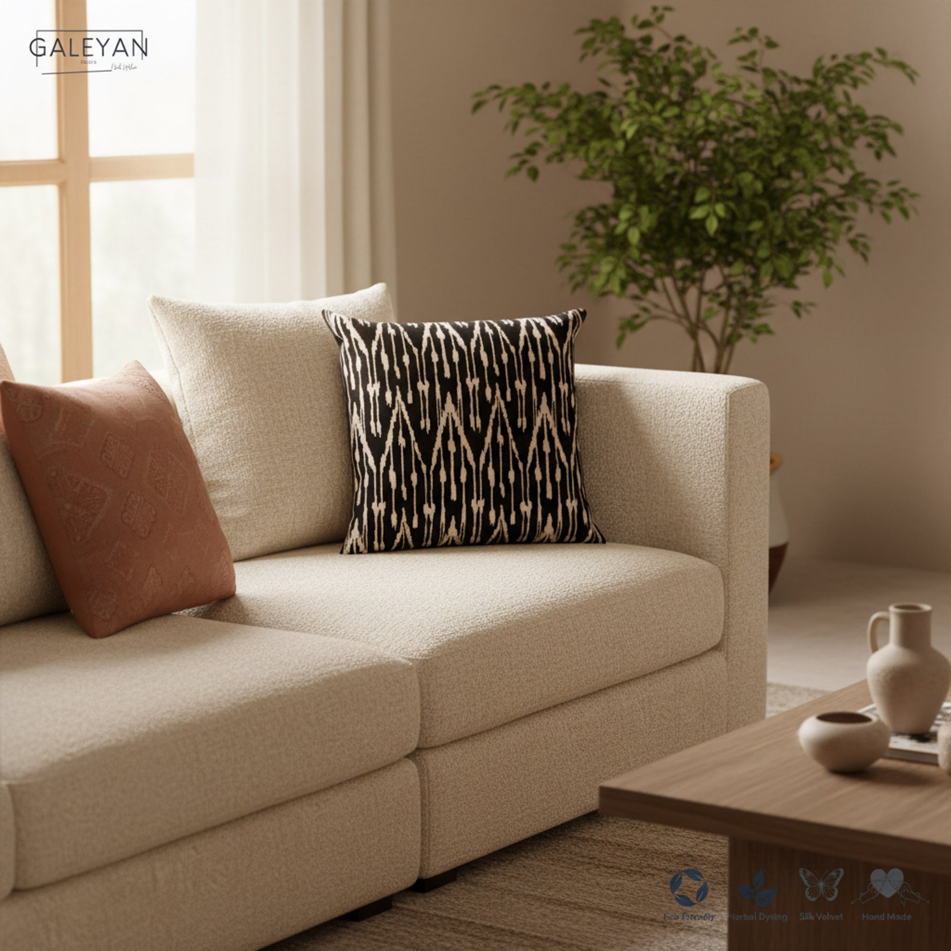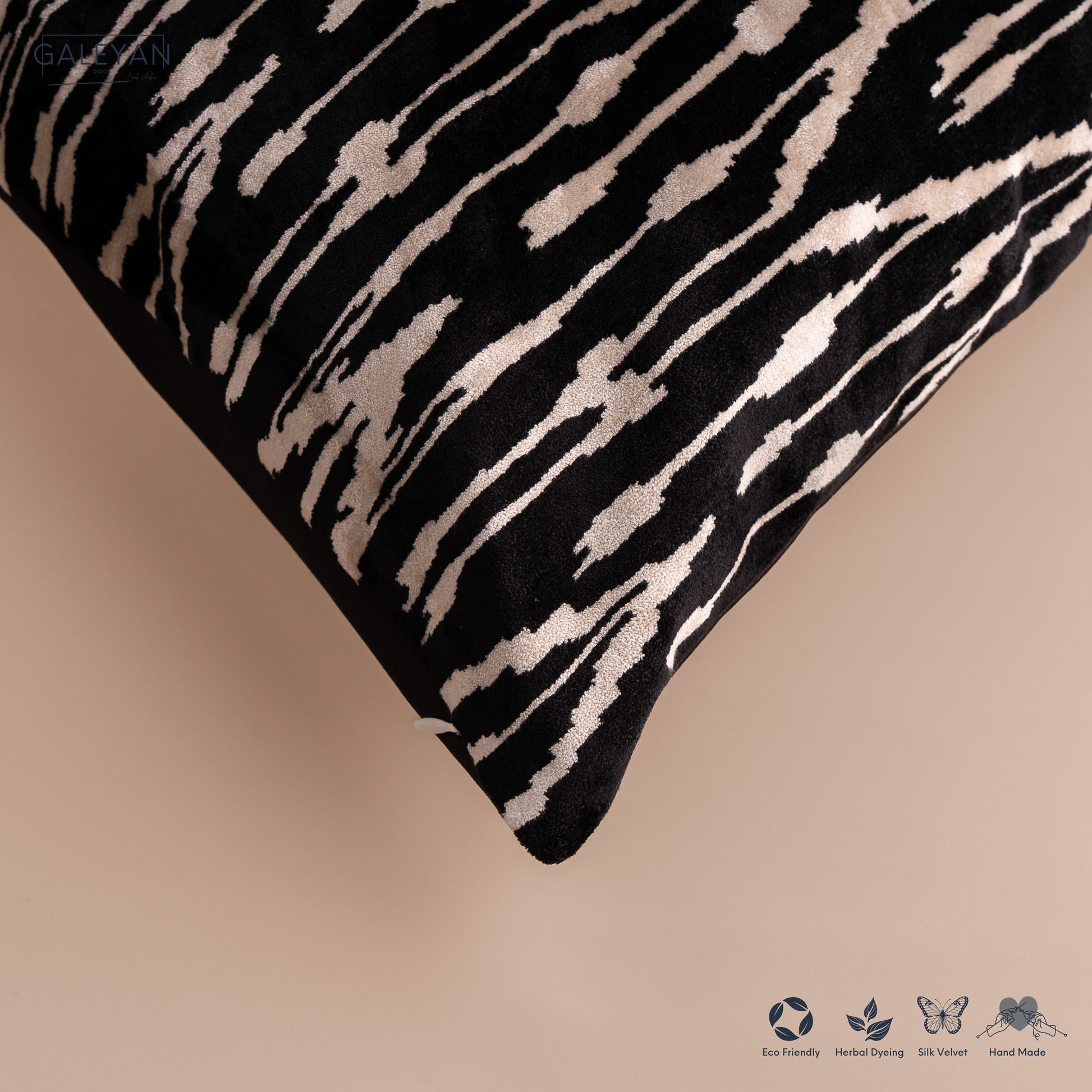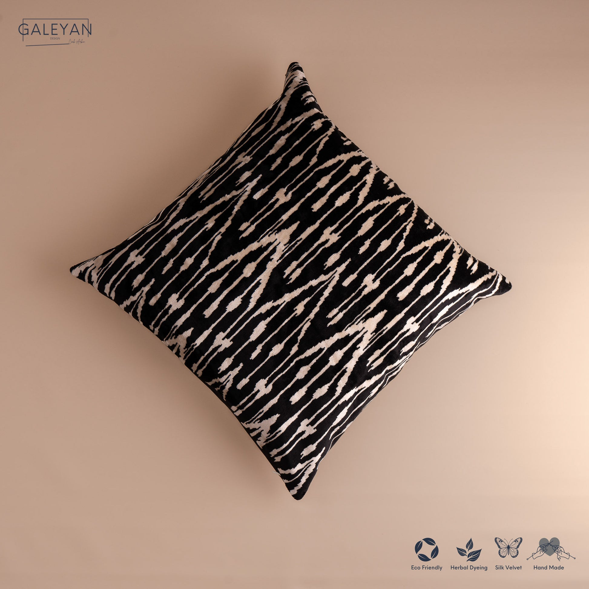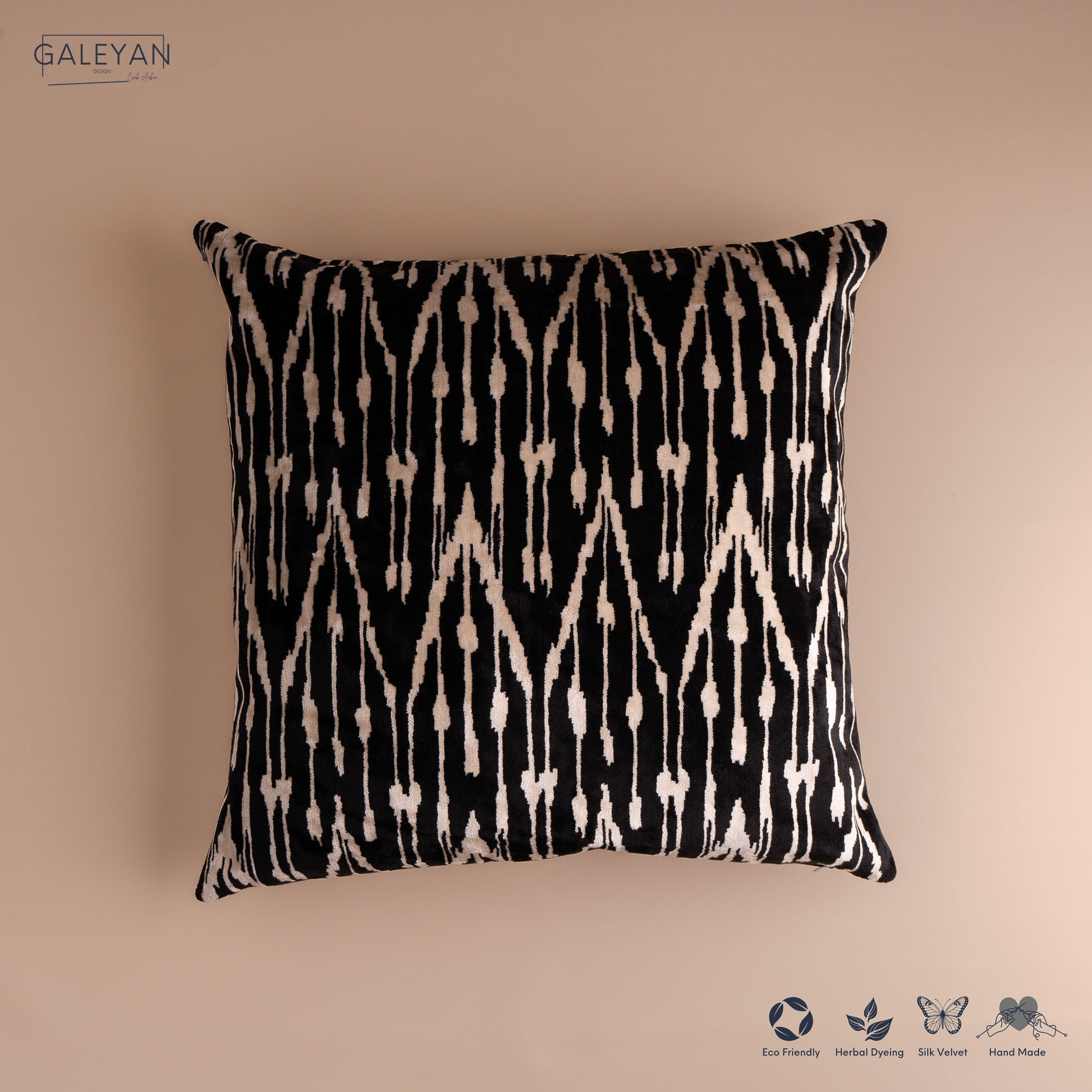 • Front: 100% silk velvet, handwoven ikat